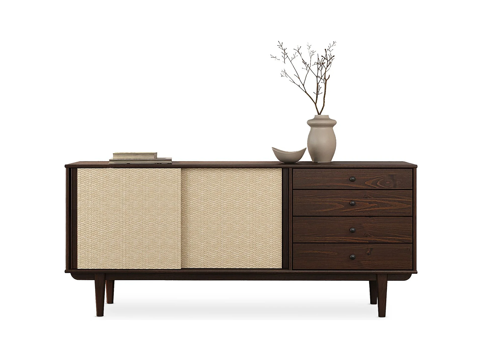 Buffet en bois SIMONA L 175 cm coloris noyer avec 4 Tiroirs 2 Portes Coulissantes, pour Salon ou Salle à manger