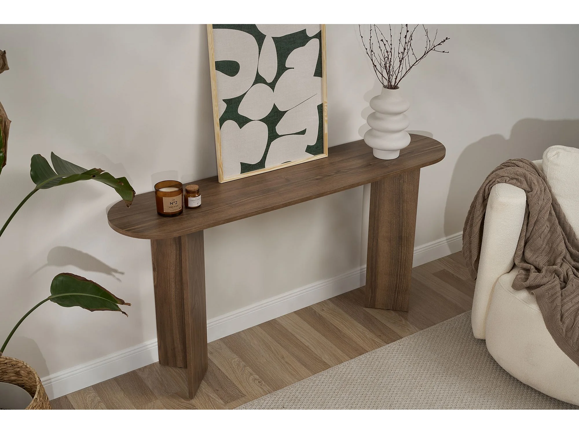 Console d'entrée design organique effet bois foncé MARFA