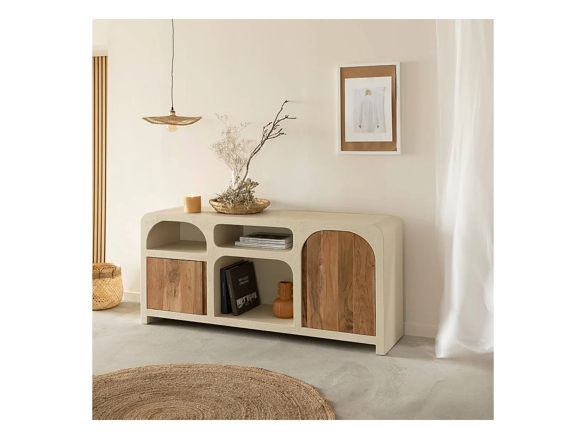 Buffet en MDF effet béton et bois d'acacia Dalva