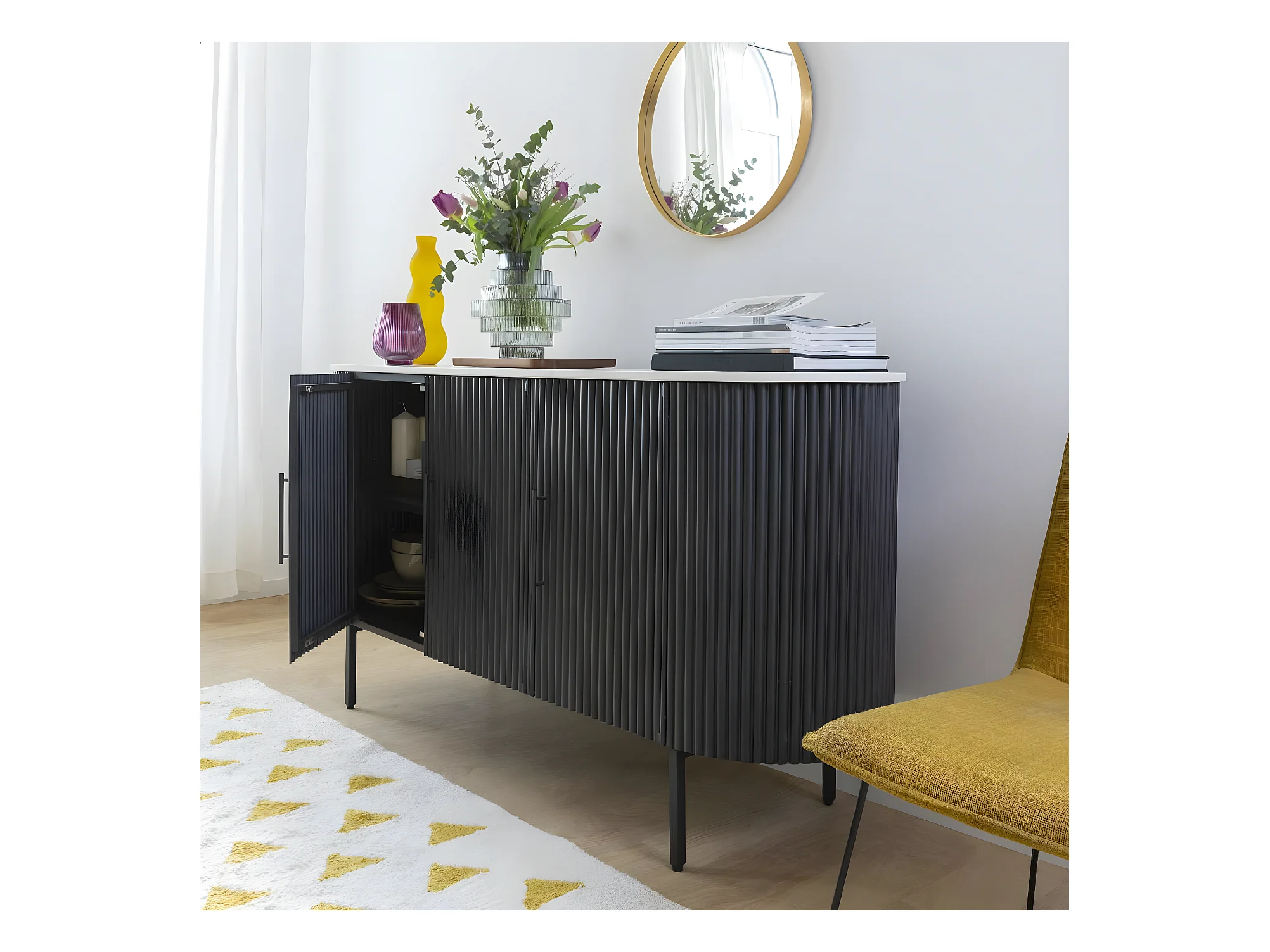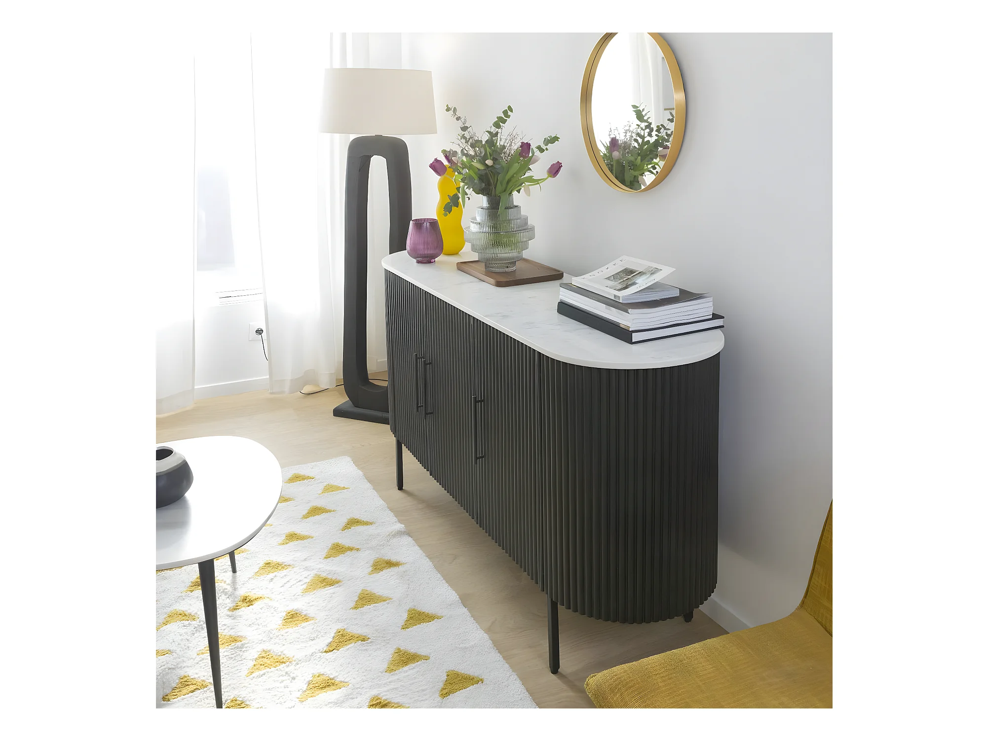 Buffet en métal et marbre blanc Mona