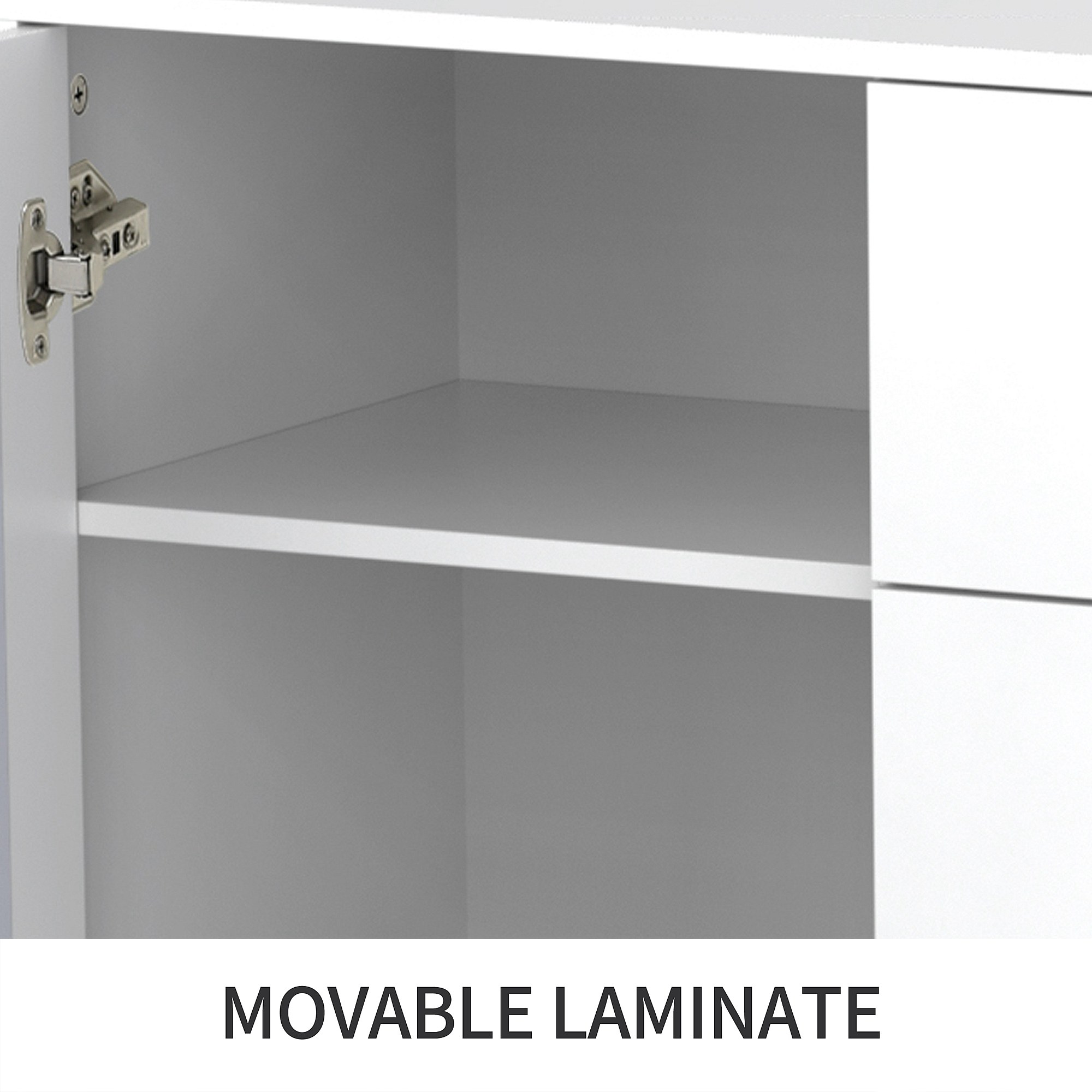 Buffet en miroir 147,5x40x102 cm avec poignées en cristal froid - blanc