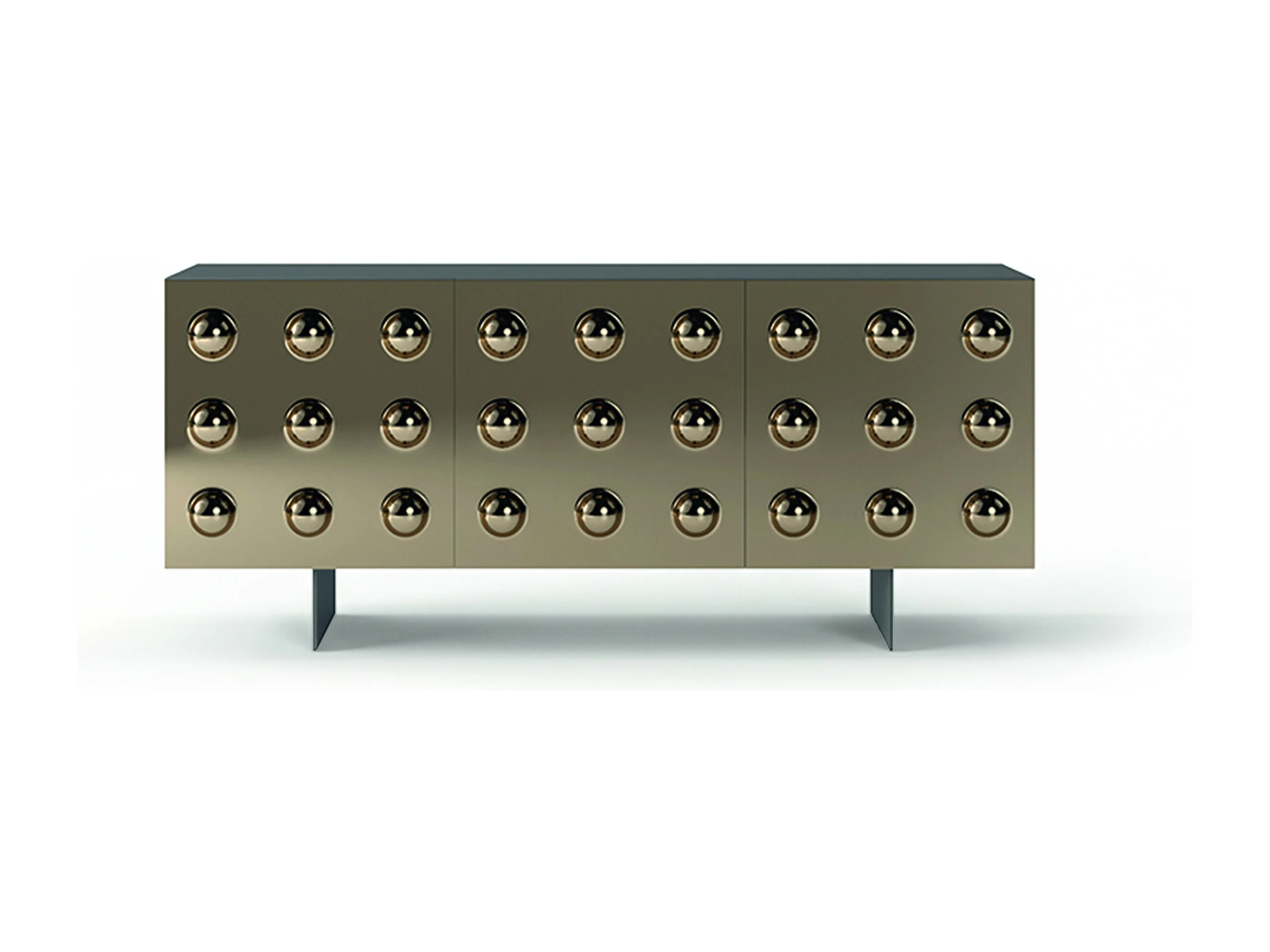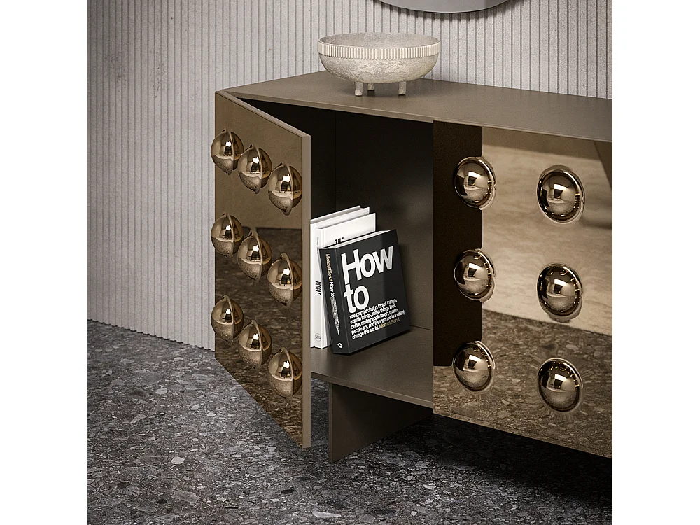 Buffet en pierre 3 portes avec base gris charbon et portes miroir bronzées