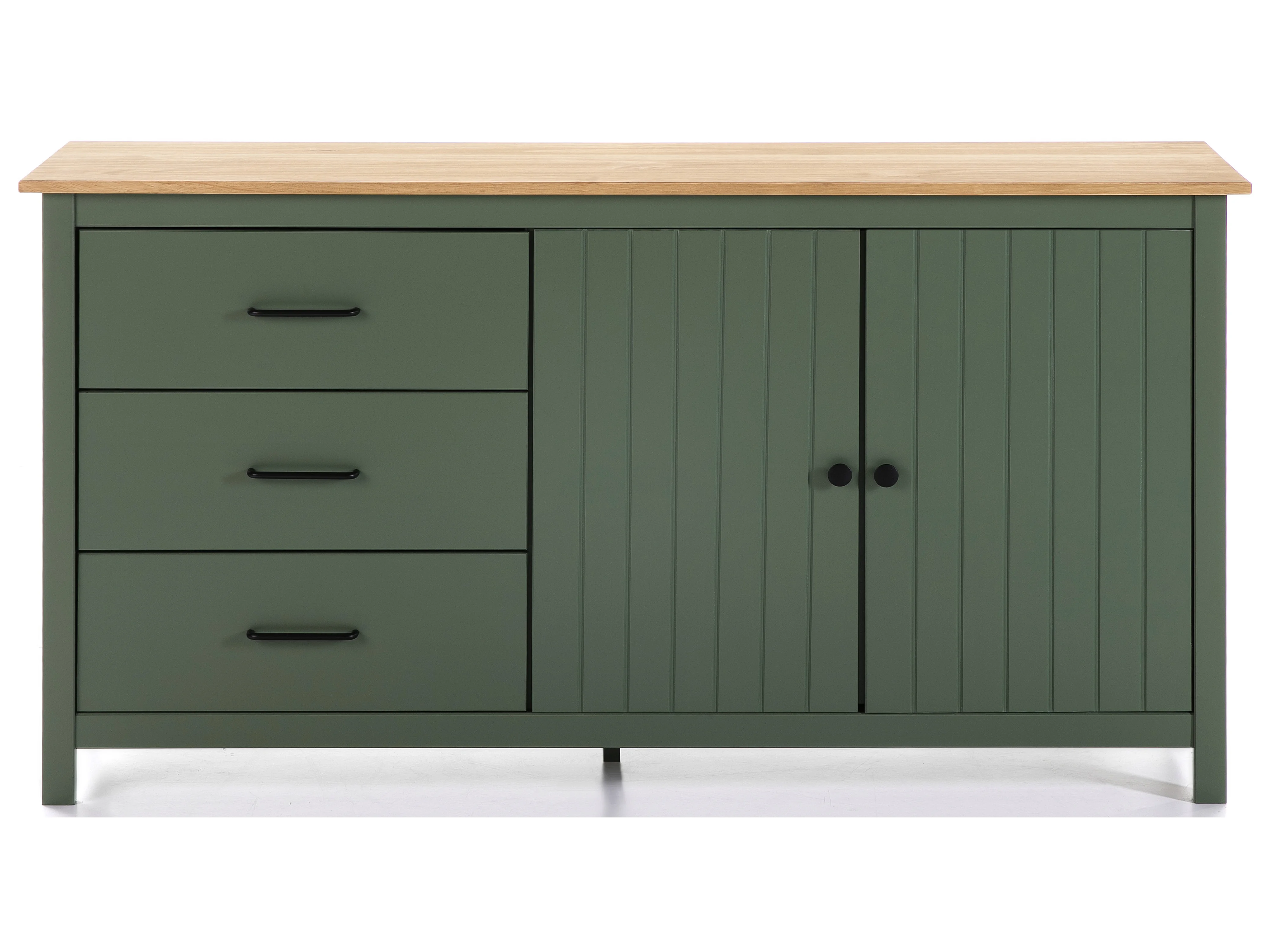 Buffet en pin massif décor ciré chêne et vert, meuble de rangement - Longueur 150 x Profondeur 40 x Hauteur 80 cm