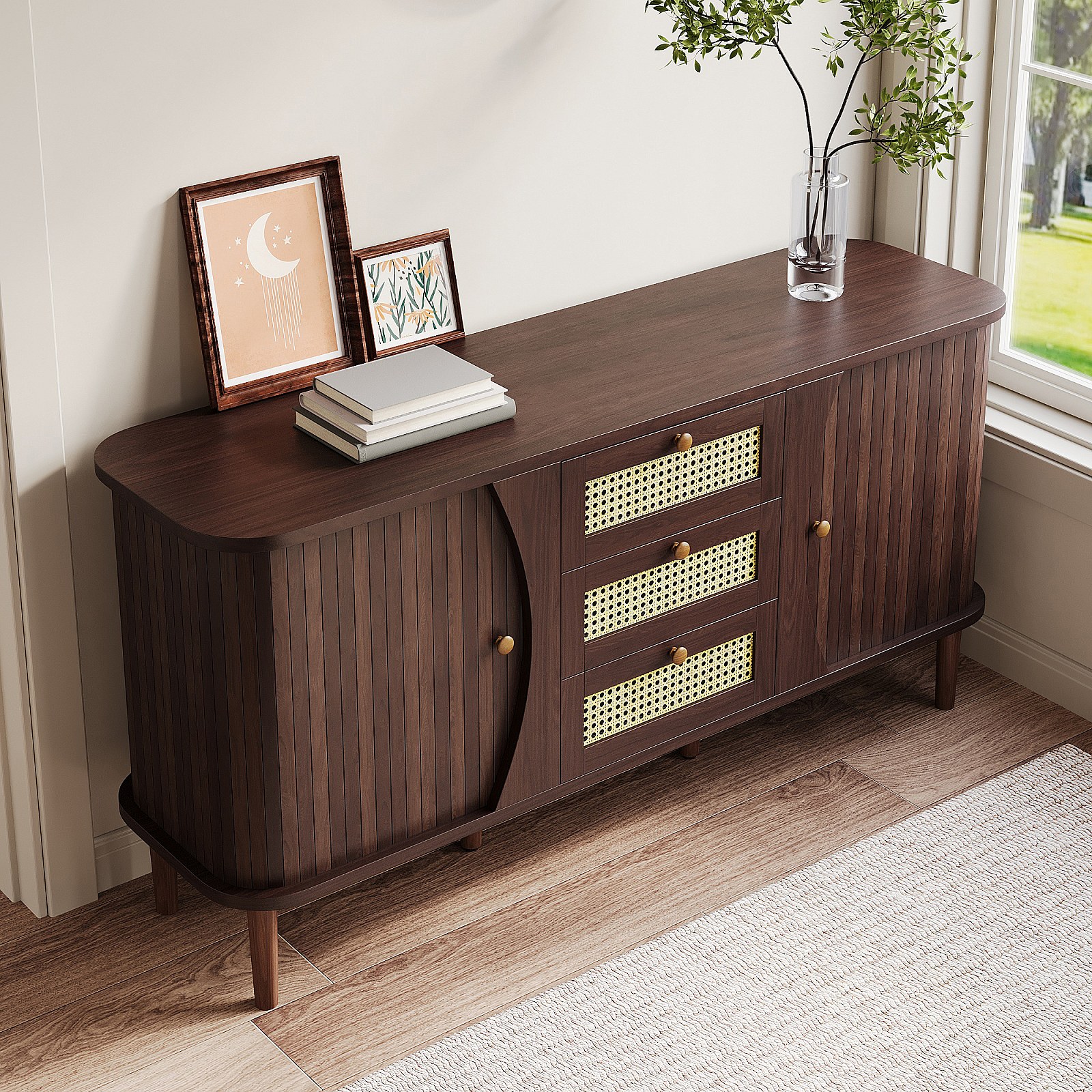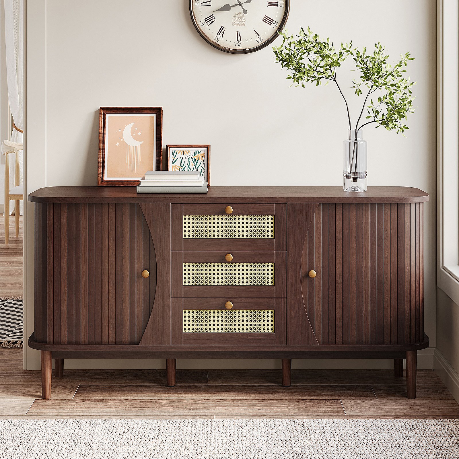 Buffet en rotin avec portes coulissantes – Étagères réglables et plateau arrondi – Commode design pour salon ou chambre