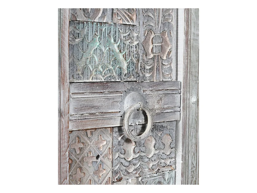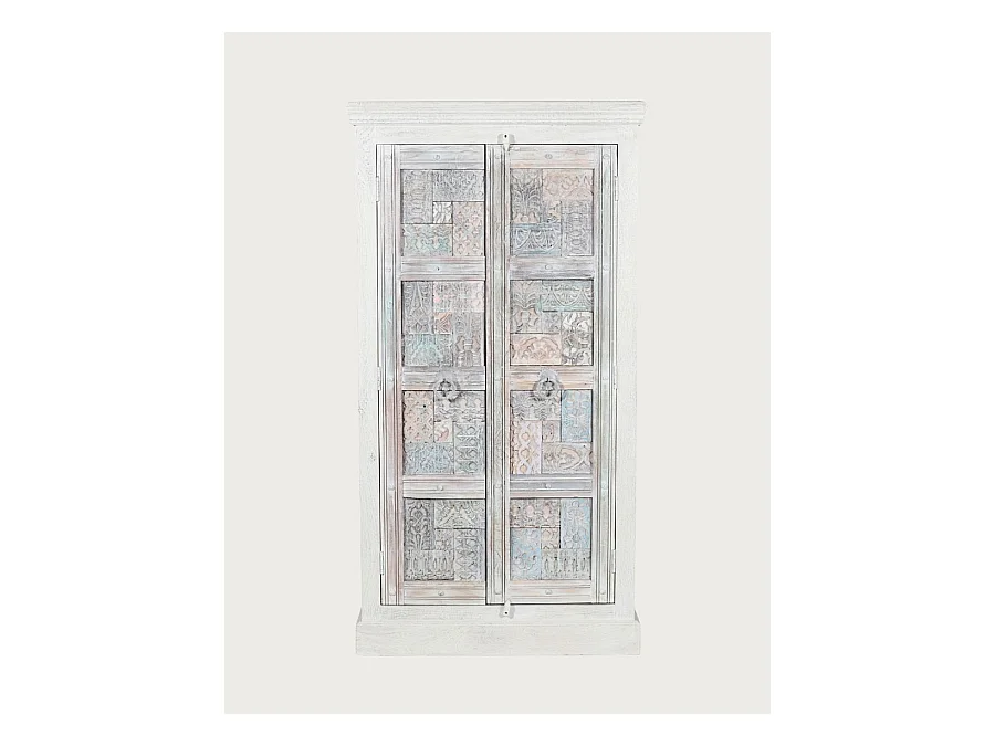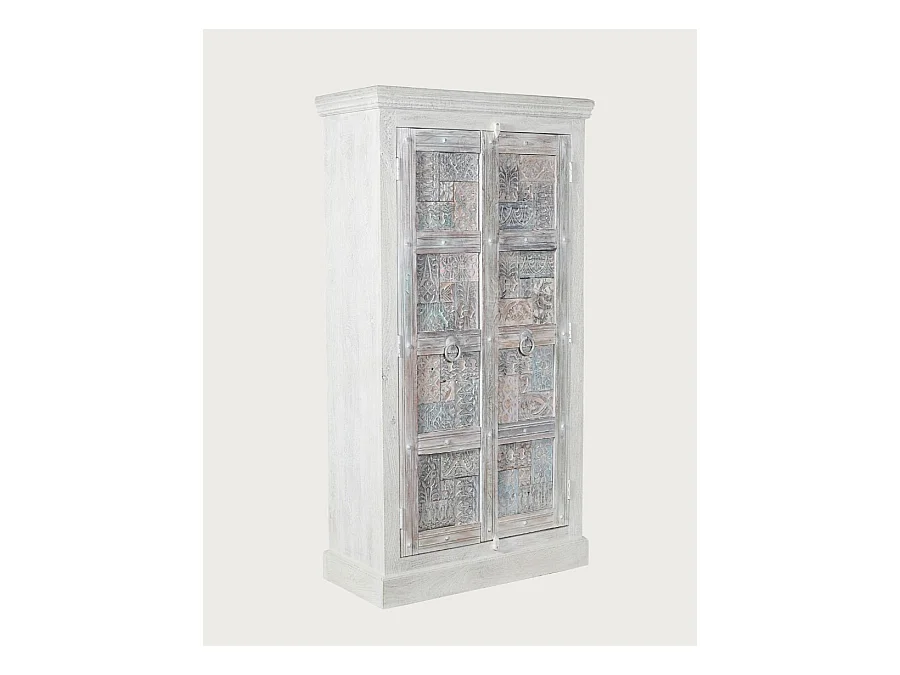 Viva - Armoire 2 portes en bois massif de manguier sculptée