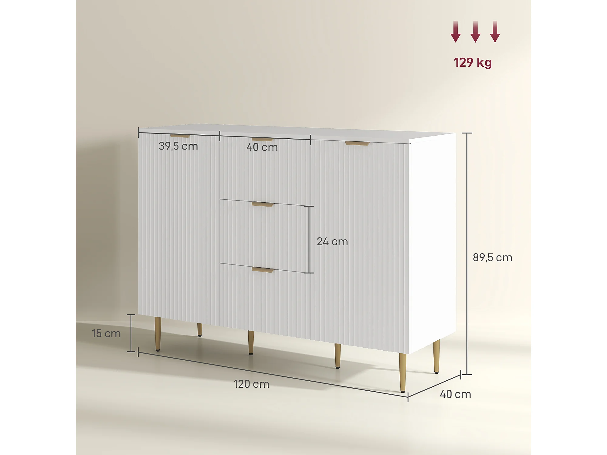 Buffet enfilade 2 portes 2 étagères 3 tiroirs - dim. 120 x 40 x 90 cm - métal doré blanc