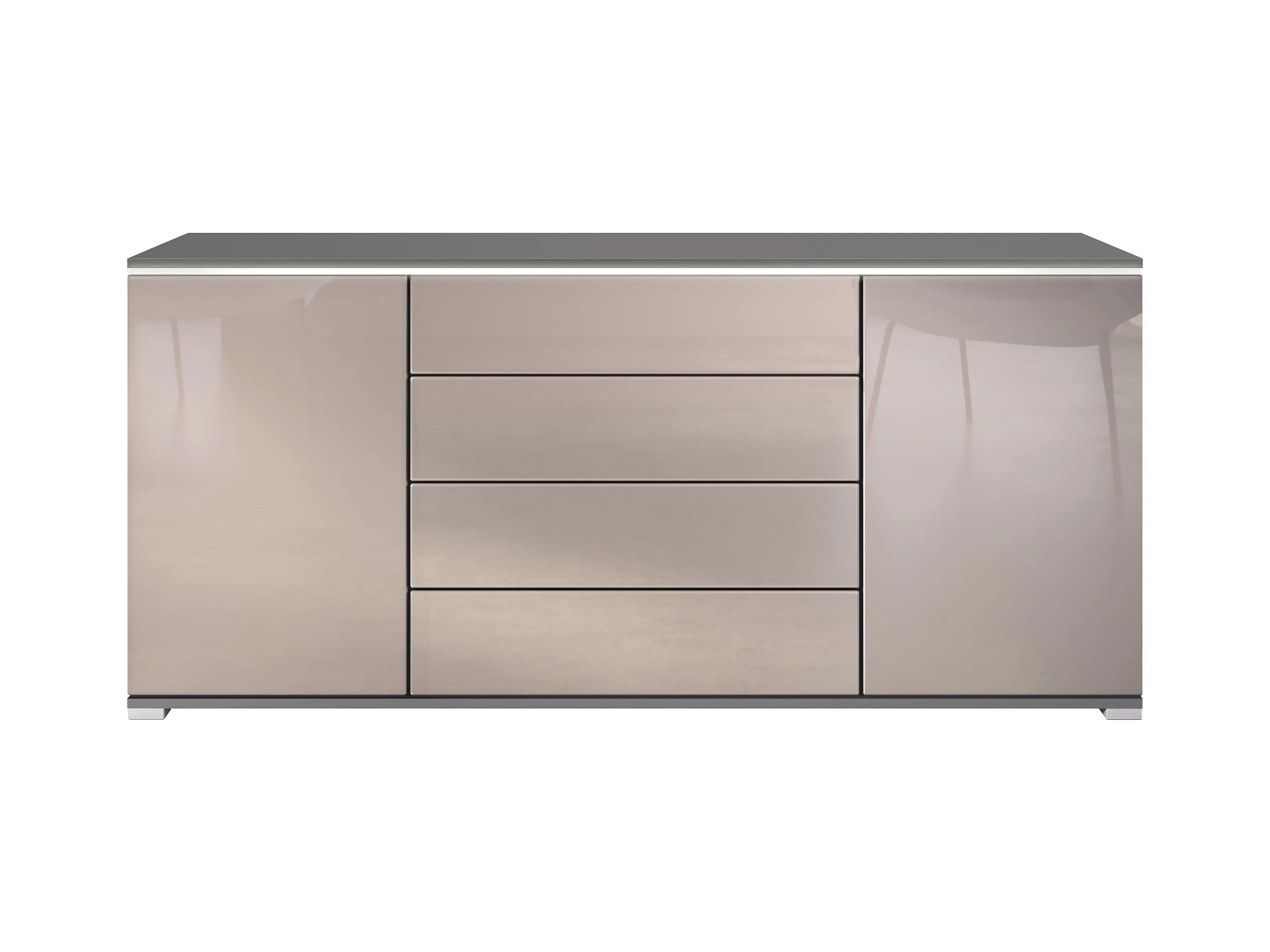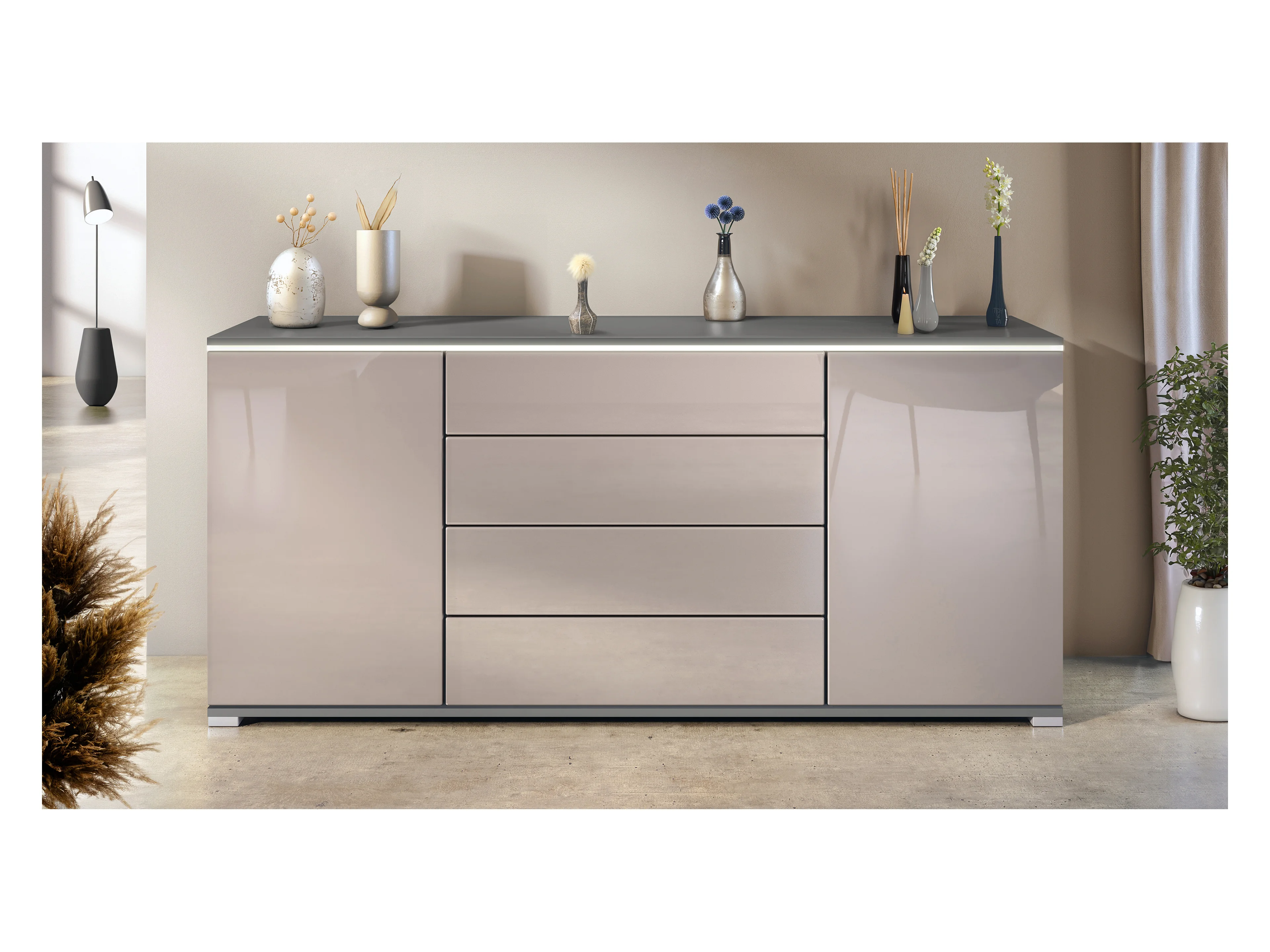 Buffet Faro V2 – Meuble avec 2 Portes & 4 Tiroirs, Armoire avec Bande LED Lumineuse, anthracite mat / gris sable haute brillance (166,5 x 75,5 x 35)