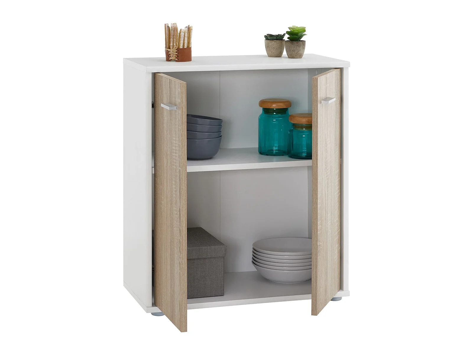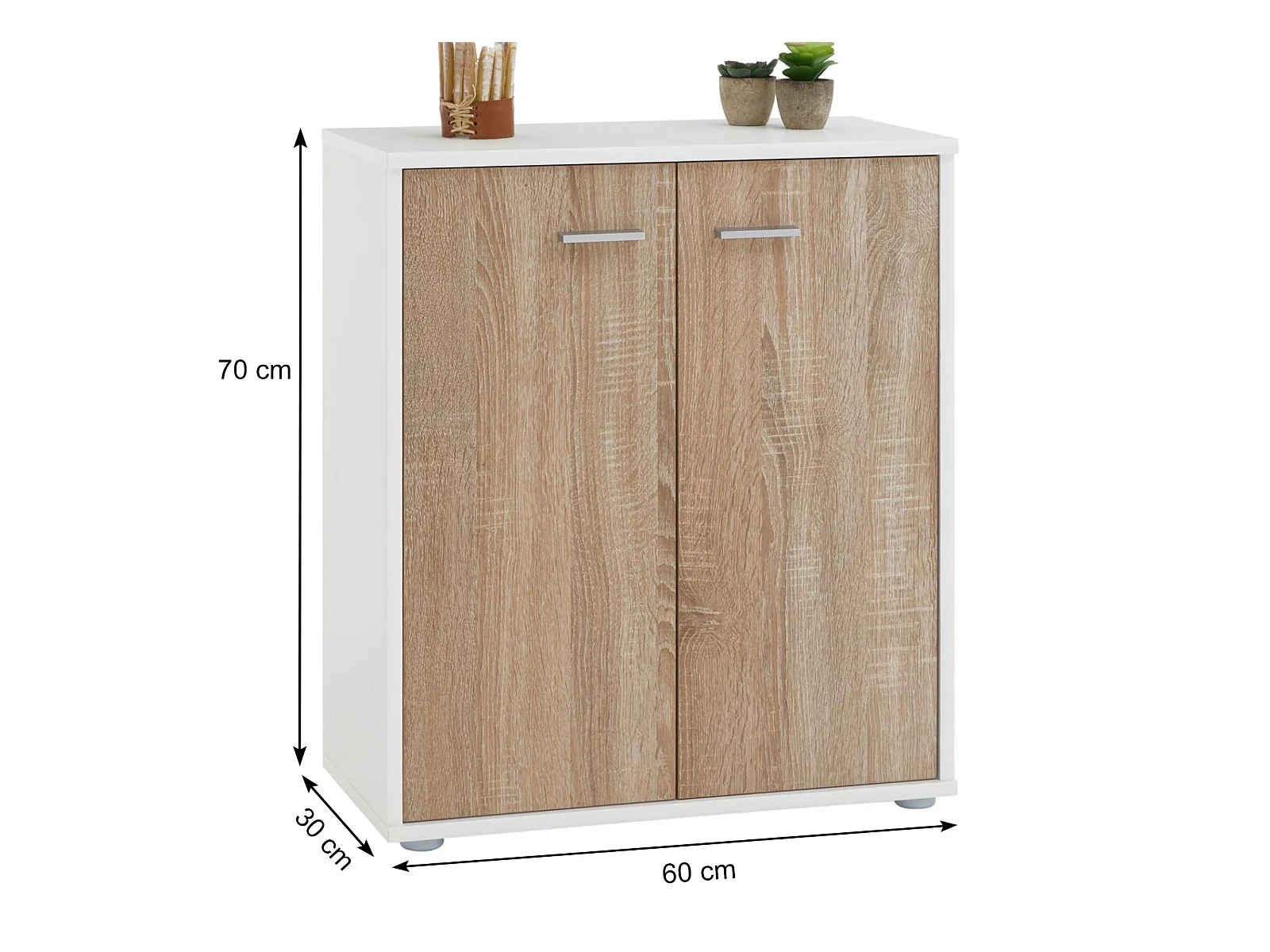 Buffet salle à manger FIRMIN L 60 cm coloris blanc chêne sonoma avec 2 portes bahut bas meuble de rangement style moderne
