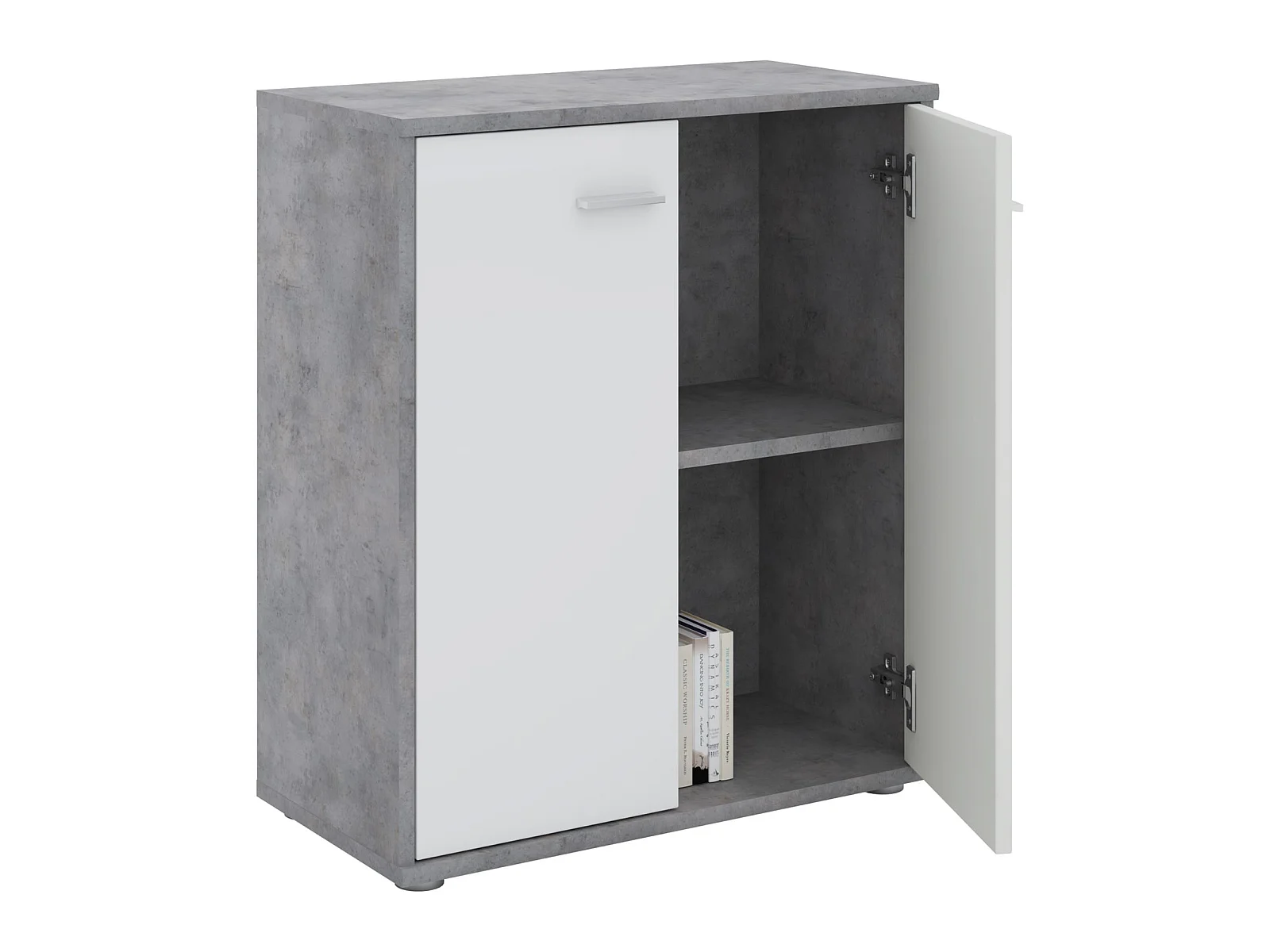 Buffet salle à manger CALAIS L 60 cm coloris béton et blanc avec 2 portes bahut bas meuble de rangement style moderne
