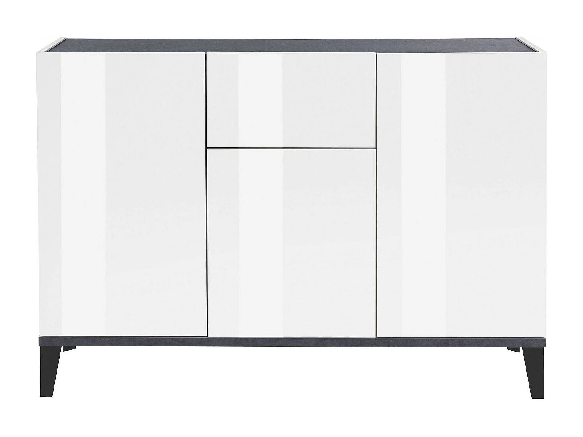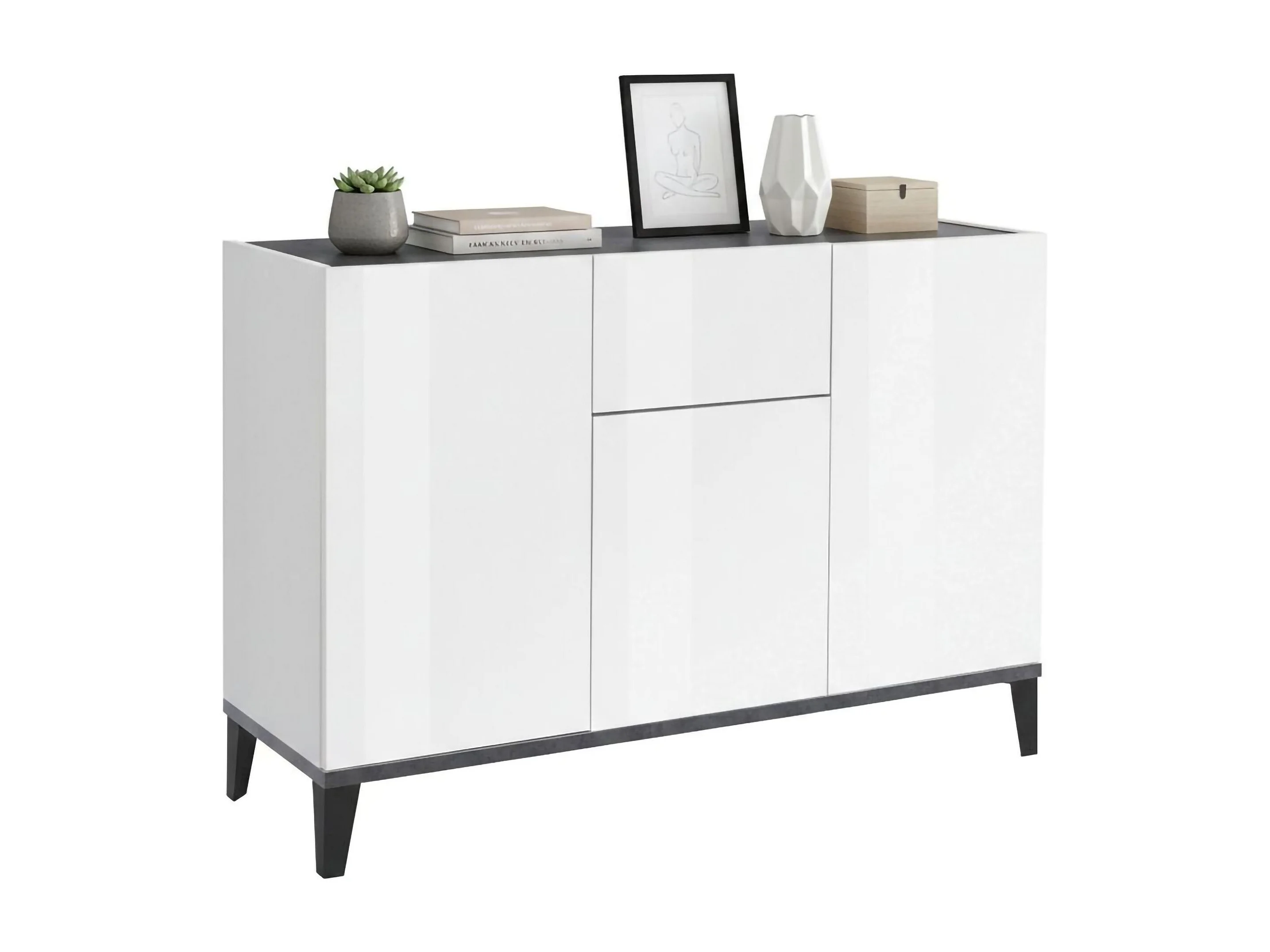 Buffet Giorgio, Buffet de cuisine avec 3 portes et 1 tiroir, Buffet de salon, Buffet de cuisine, 100% Made in Italy, 120x40h82 cm, Blanc brillant et ardoise