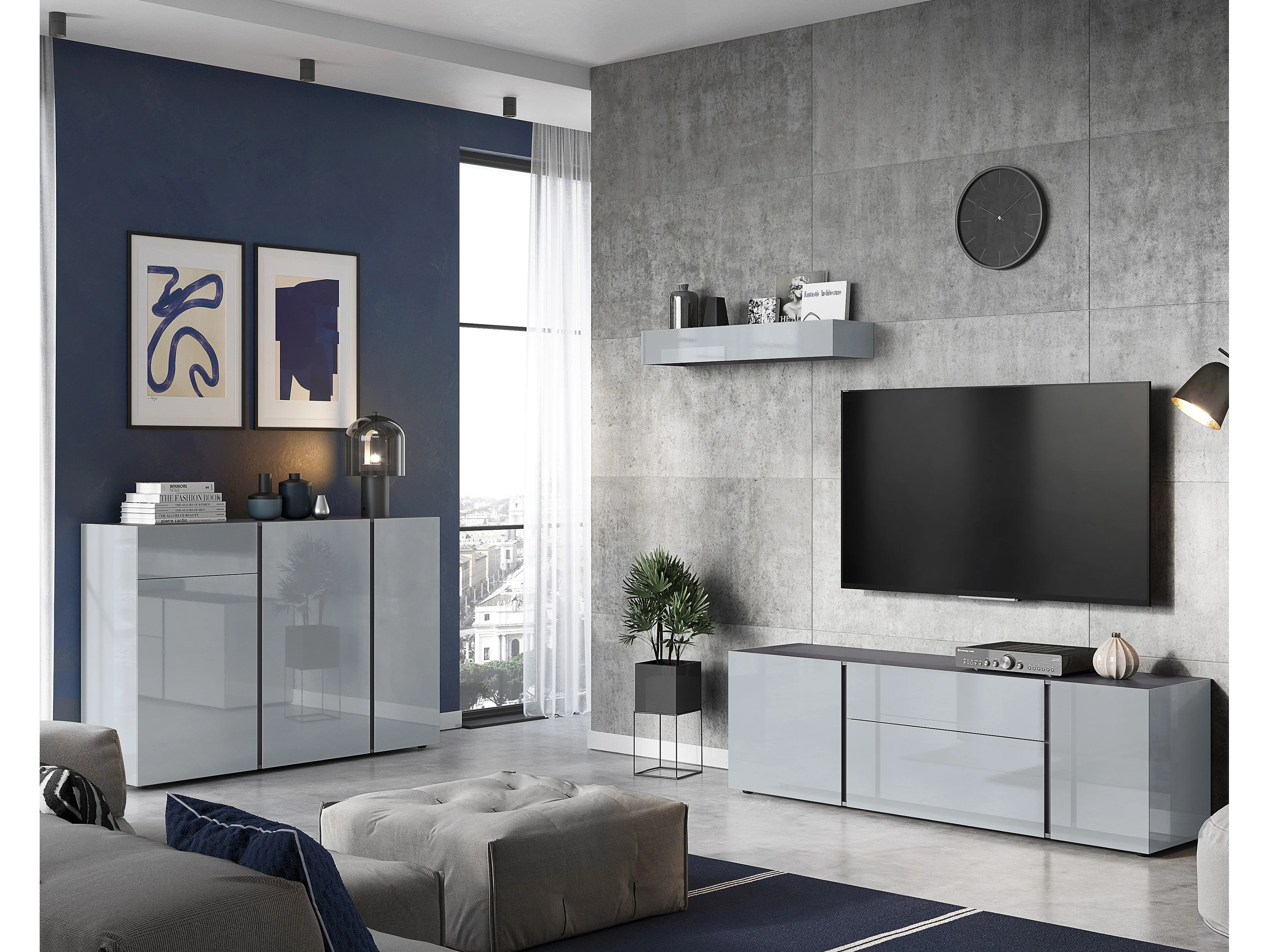 Buffet gris avec encadrement en verre 3 portes TESSA