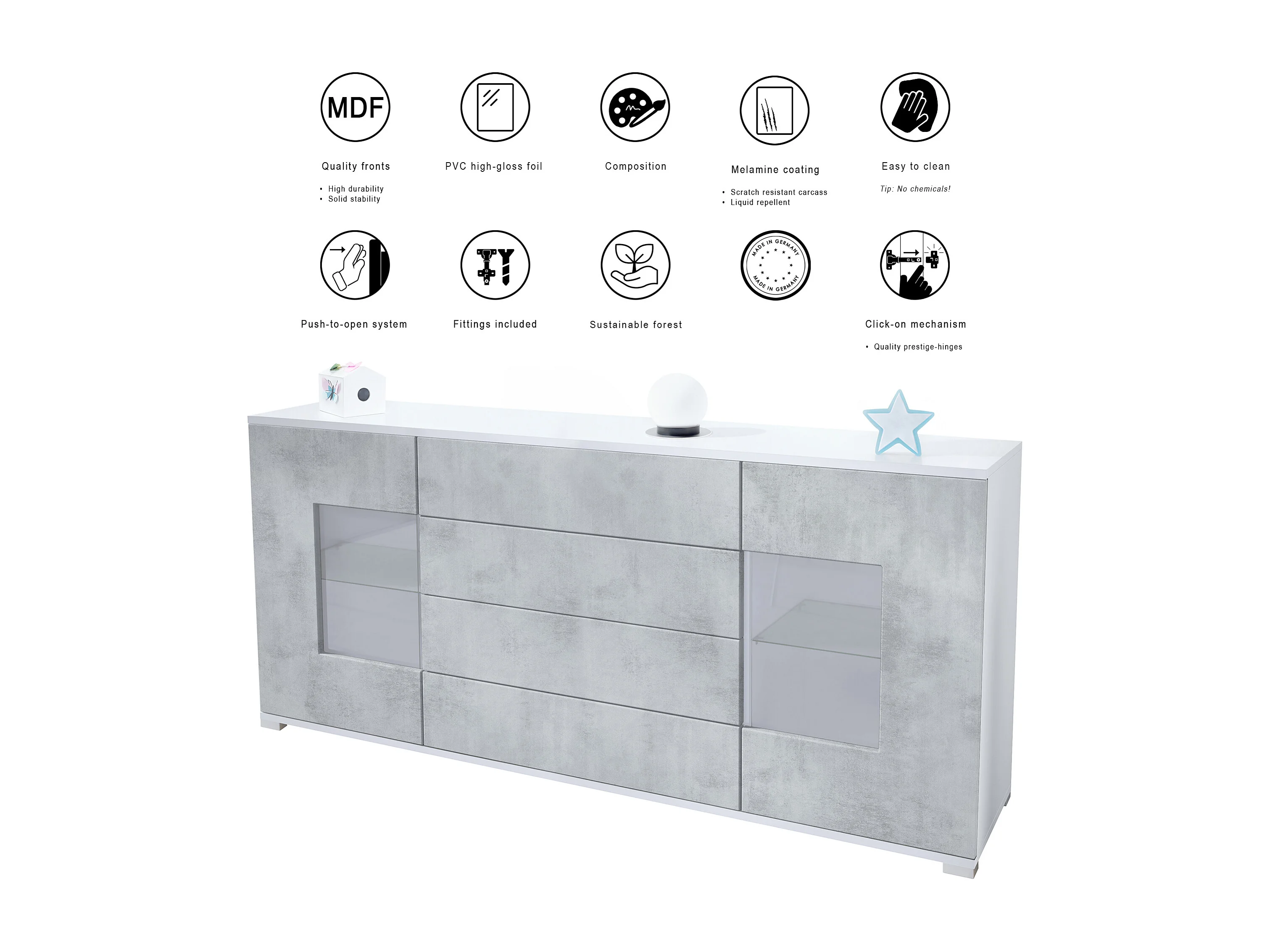 Buffet Grömitz V2 – Meuble avec 2 Grandes Portes et 4 Tiroirs, blanc mat/blanc mat (166,5 x 75,5 x 35)