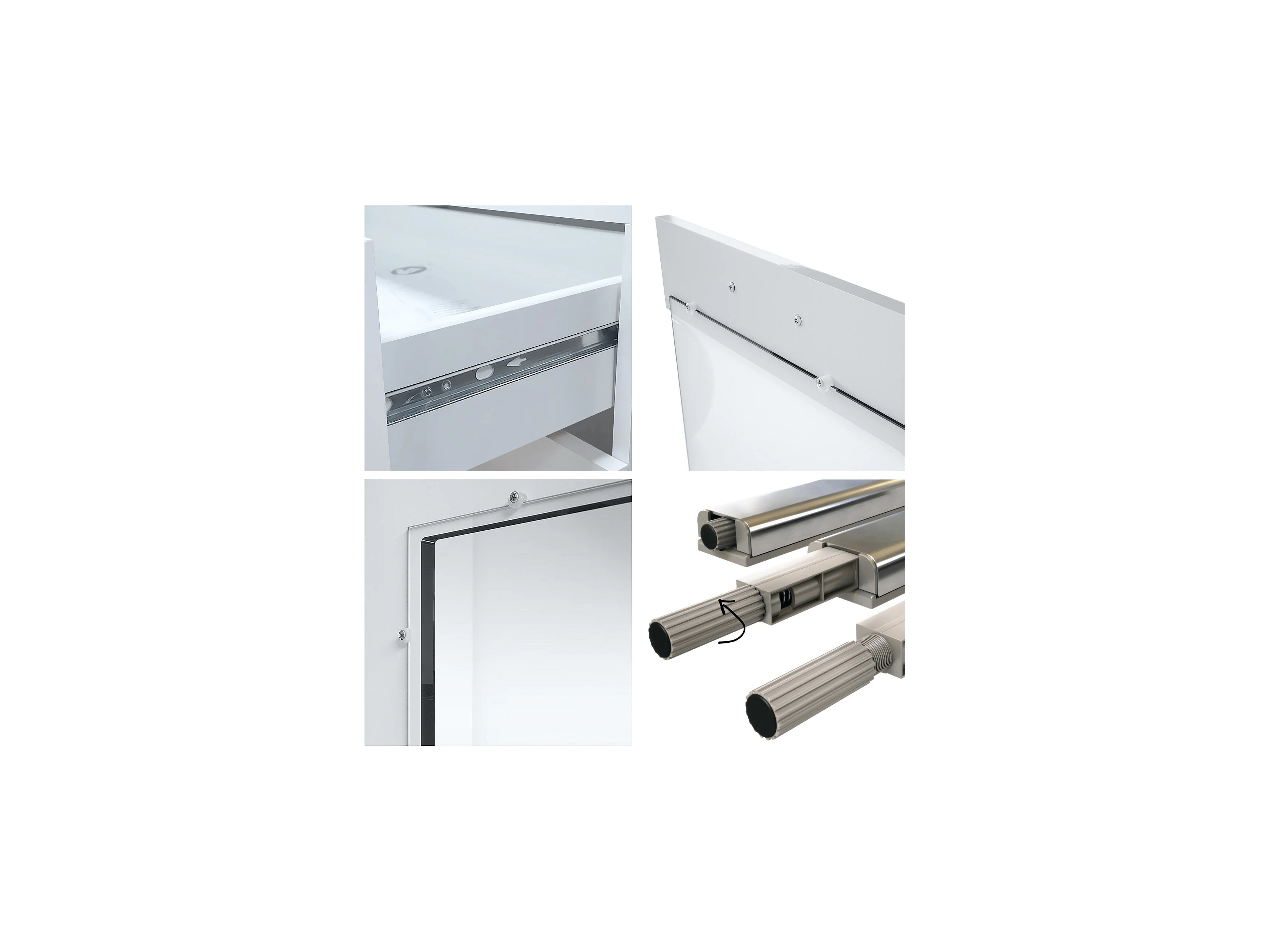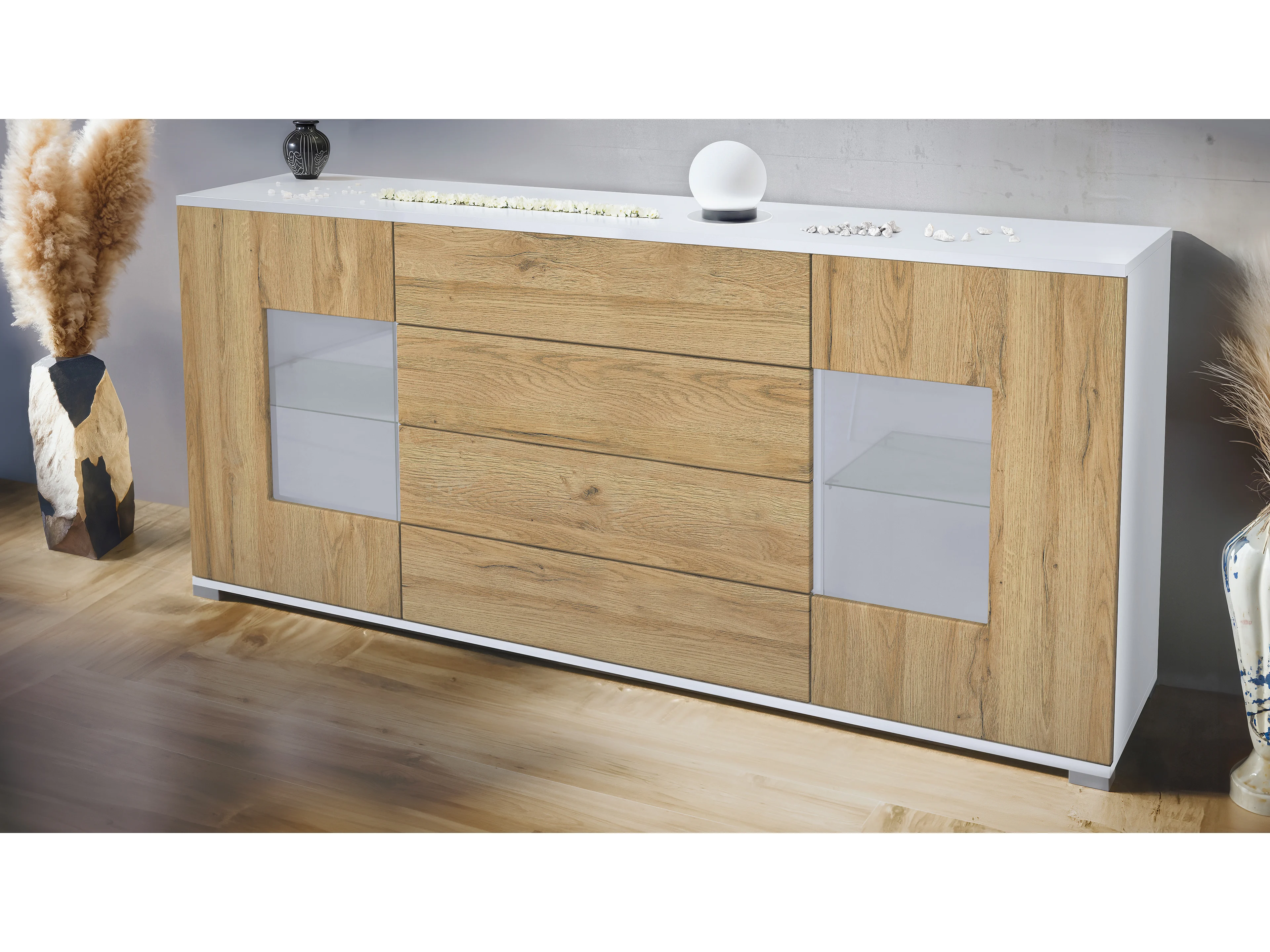 Buffet Grömitz V2 – Meuble avec 2 Grandes Portes et 4 Tiroirs, blanc mat/chêne nature (166,5 x 75,5 x 35)