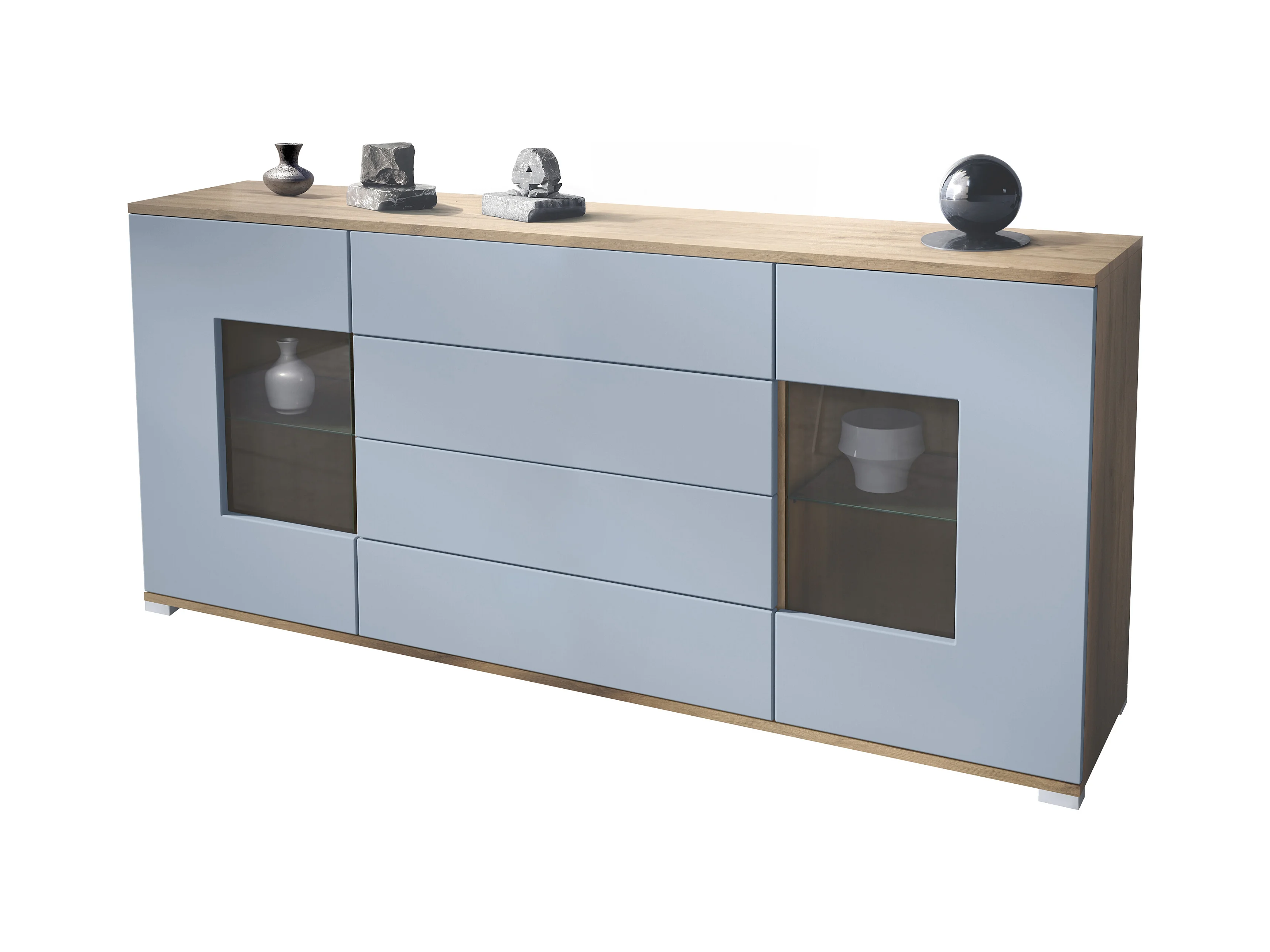 Buffet Grömitz V2 – Meuble avec 2 Grandes Portes et 4 Tiroirs, Chêne Evoke/denim mat (166,5 x 75,5 x 35)