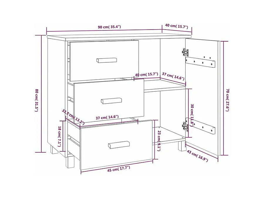 Buffet HAMAR Marron miel 90x40x80 Bois massif de pin