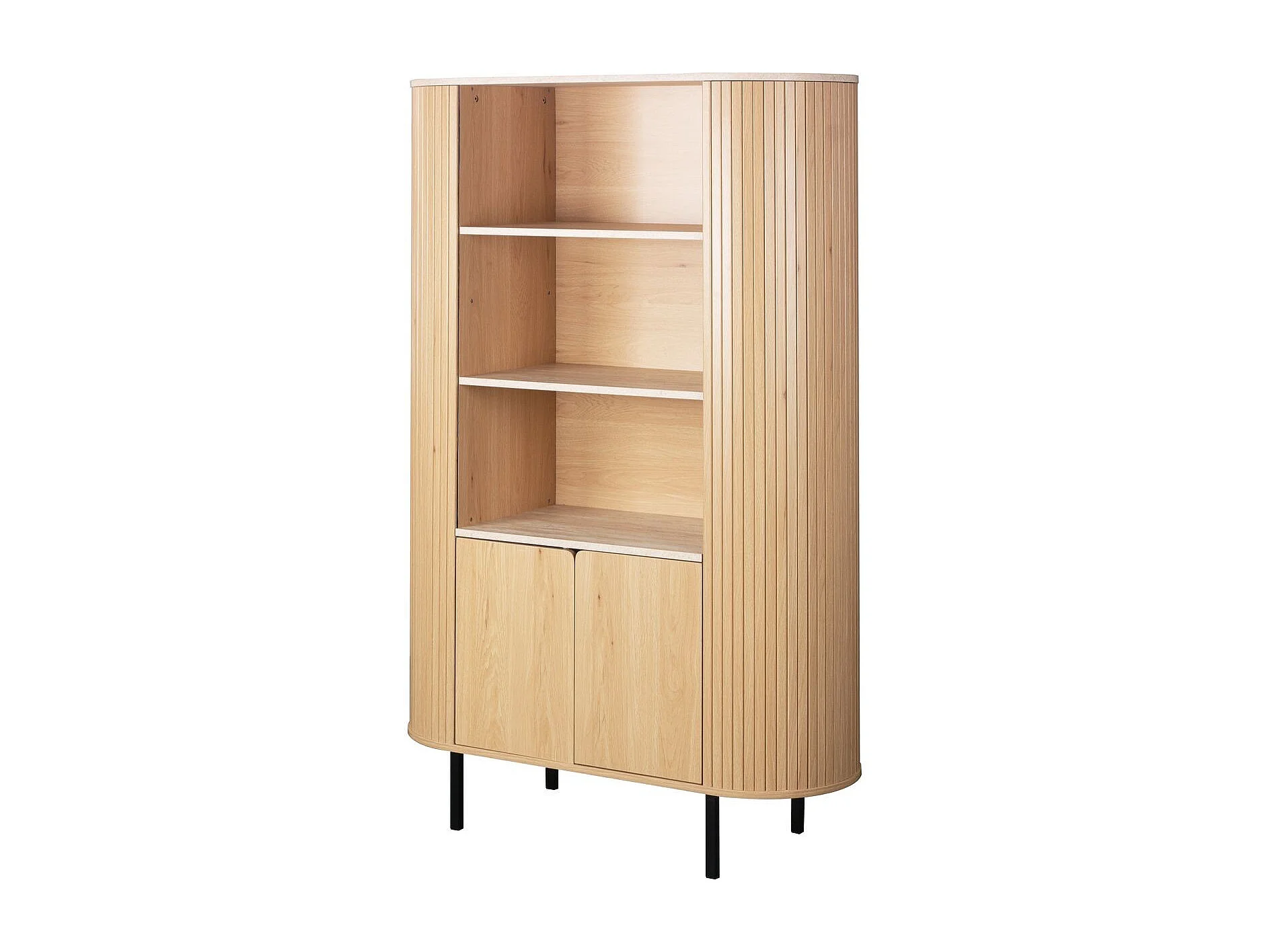 Buffet haut 2 portes 3 niches effet Chêne et Travertin 100 cm - Juna