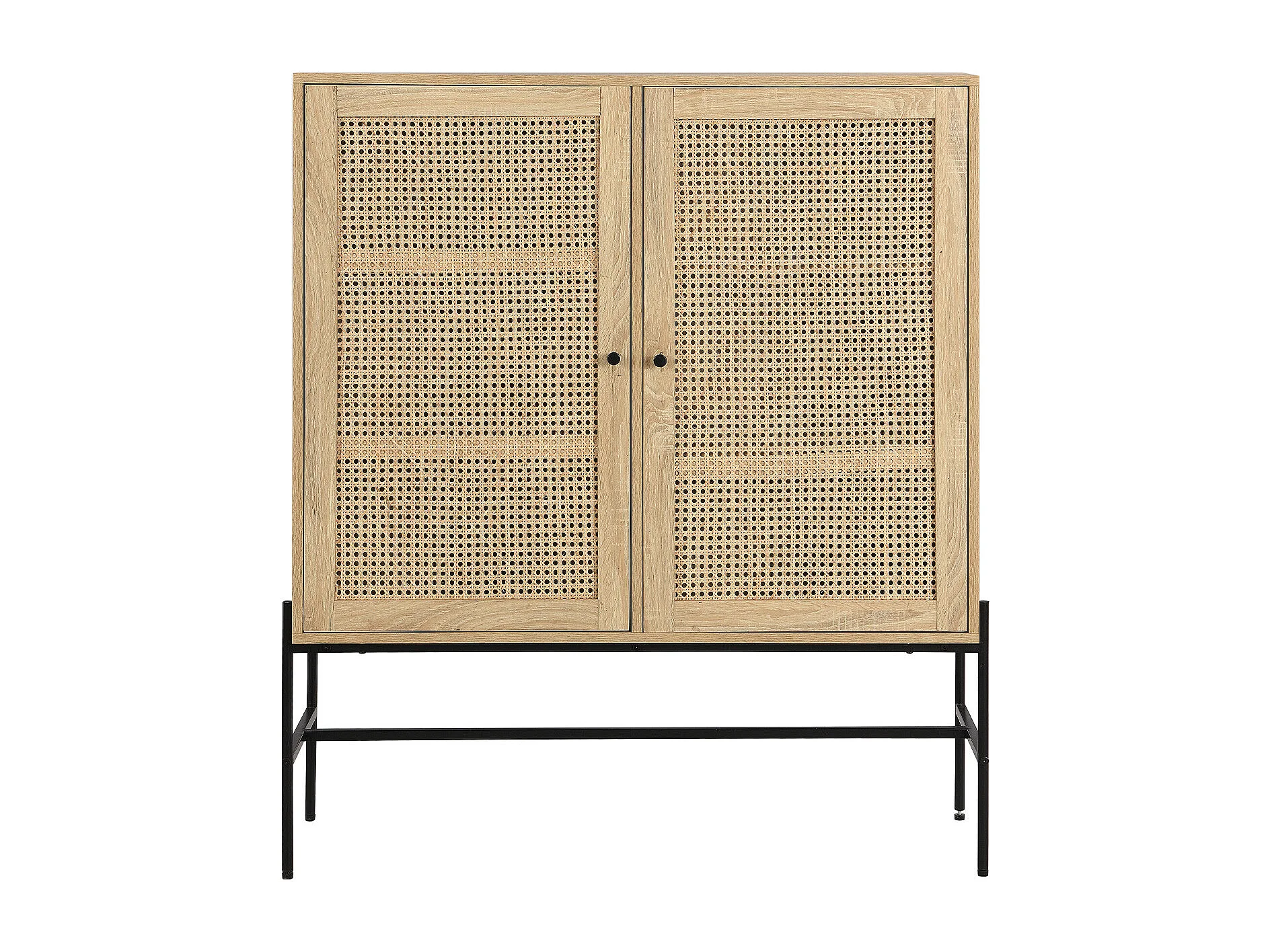 Buffet haut 2 portes en cannage naturel et effet chêne 100 cm - Iris