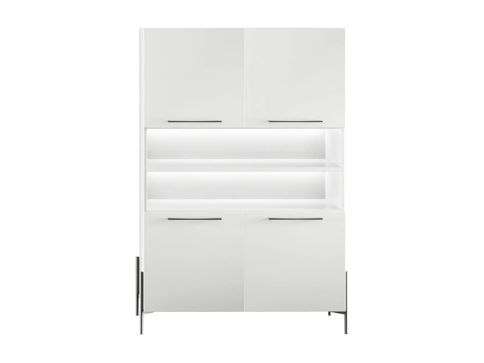 Buffet haut 4 portes laqué blanc pieds et poignées métal anthracite + Leds - CARAT