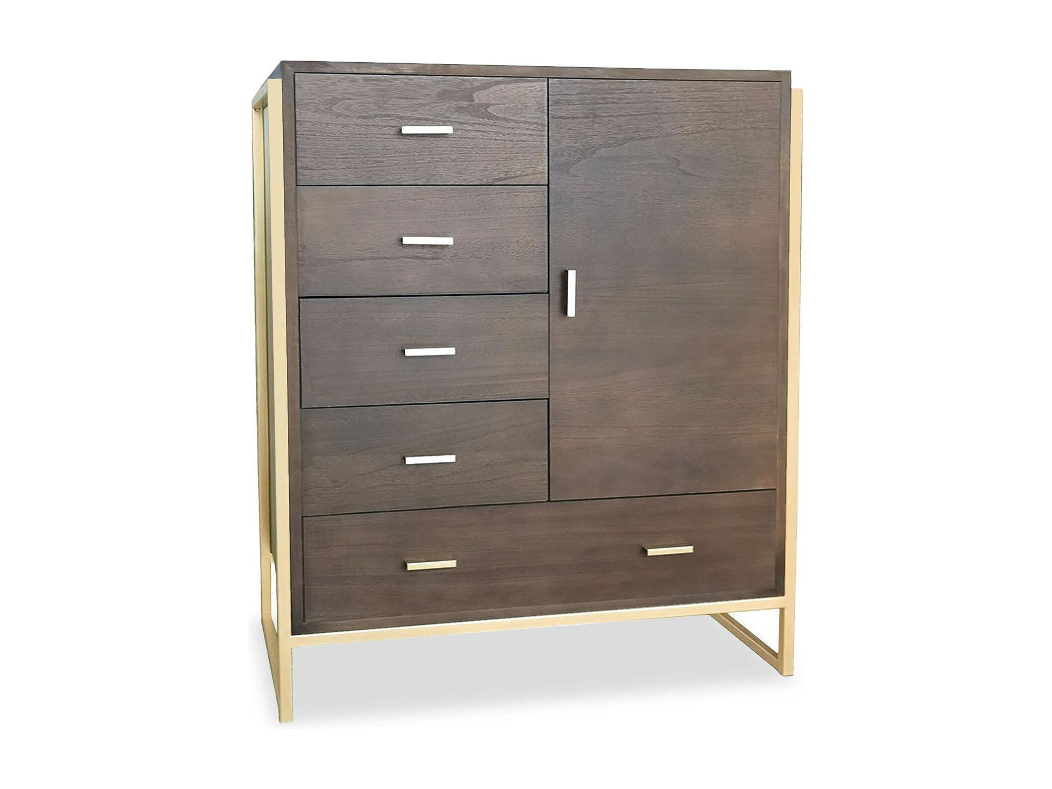 Buffet haut 5 tiroirs et 1 porte Edgar L90cm Bois Marron et Métal Or