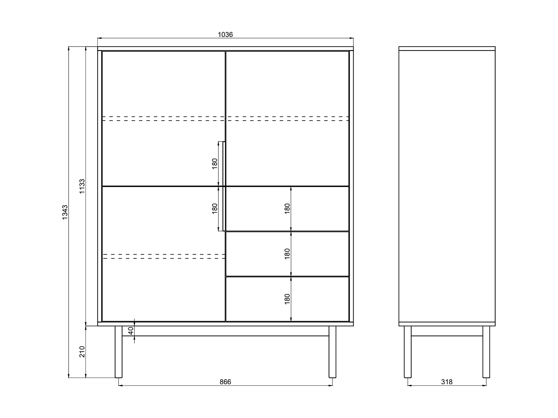 Buffet haut à trois portes - 104 cm - avec trois tiroirs - taupe (gris-beige) - VIVIARO