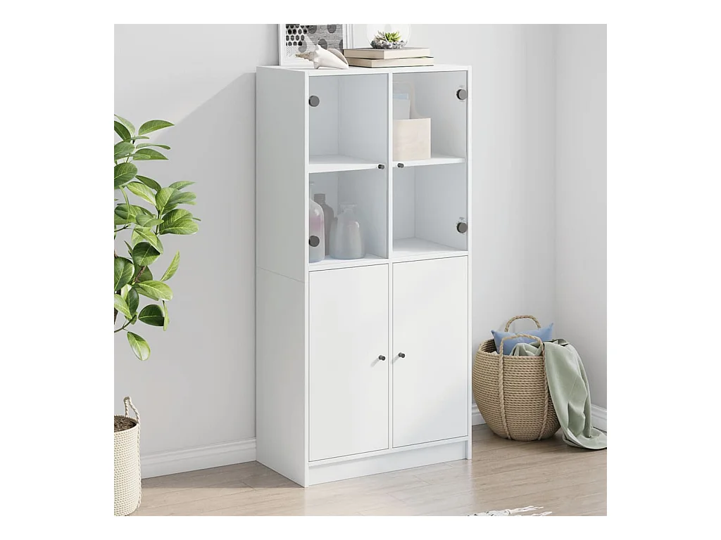 Buffet haut avec portes blanc 68x37x142 bois d'ingénierie