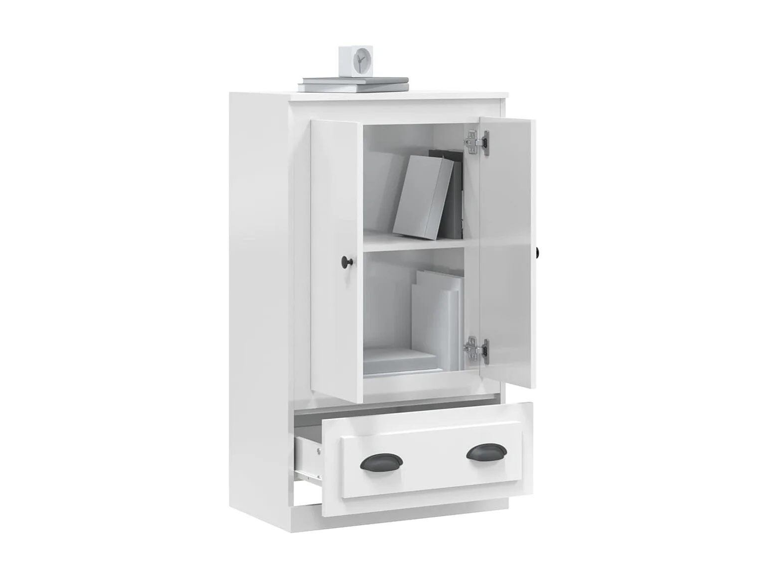 Buffet haut blanc brillant 60x35,5x103,5 cm bois d'ingénierie