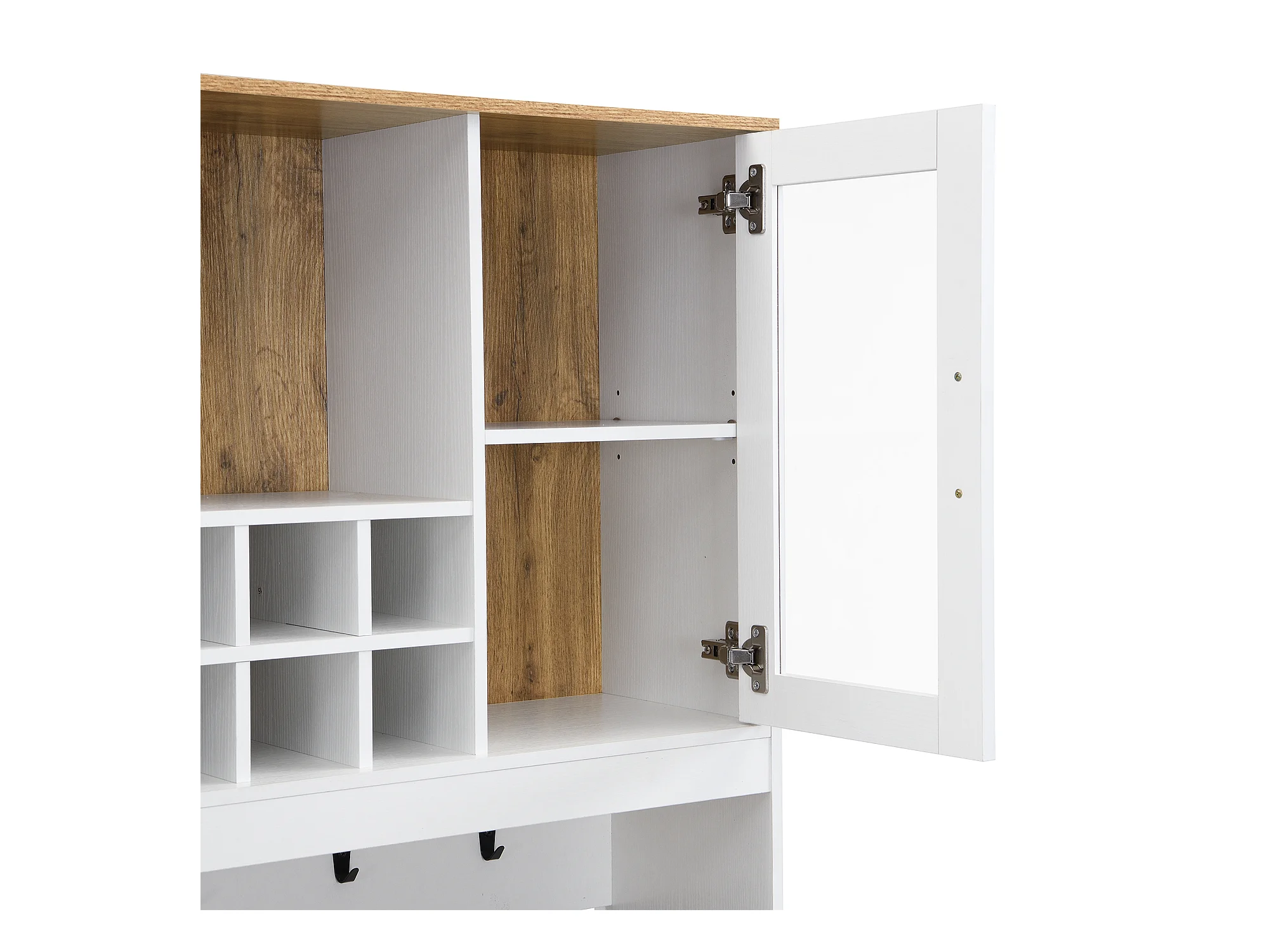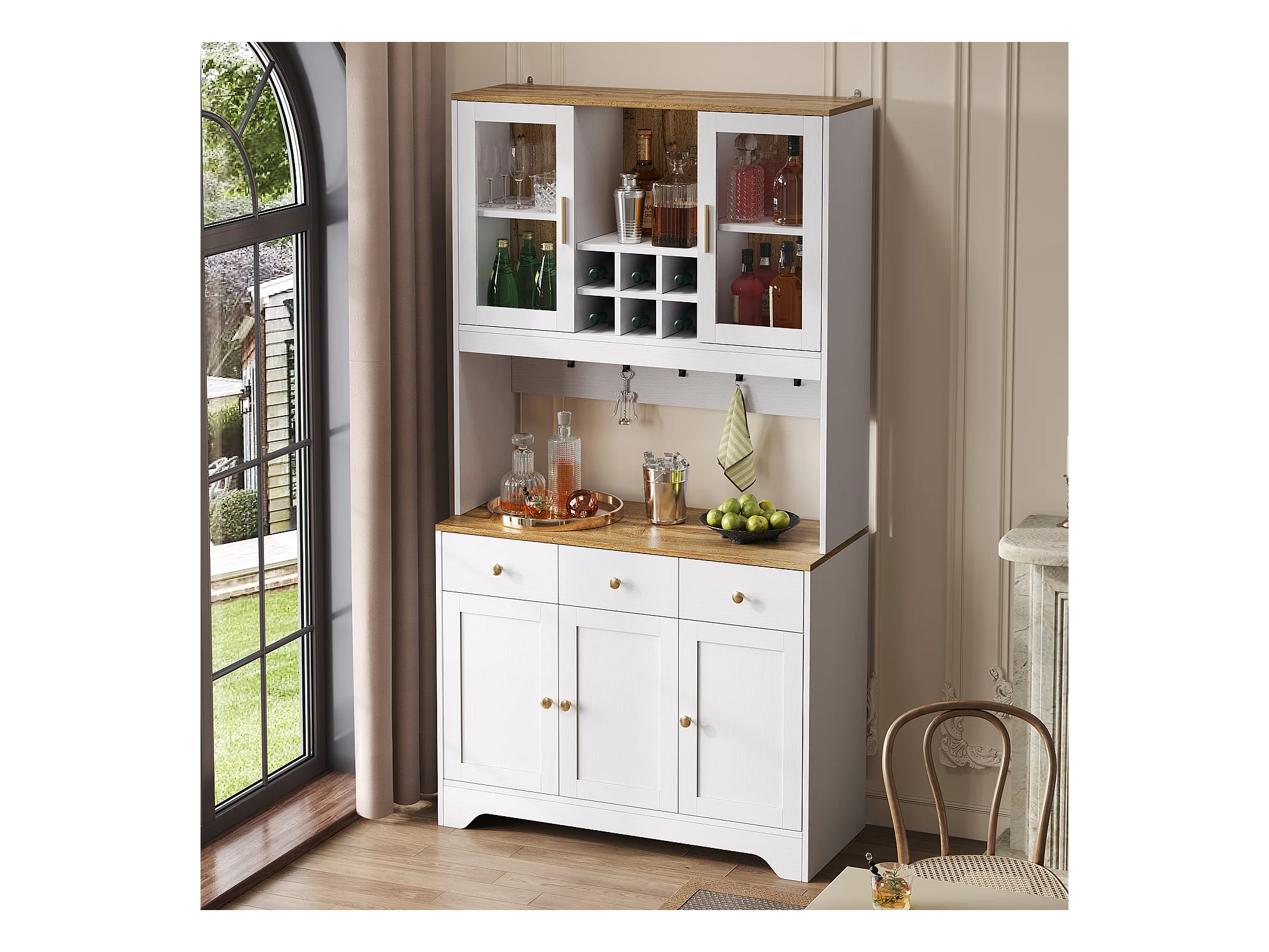 Buffet haut blanc - Buffet 5 portes et 3 tiroirs - avec casier à vin et compartiments ouverts - pour le salon et la salle à manger