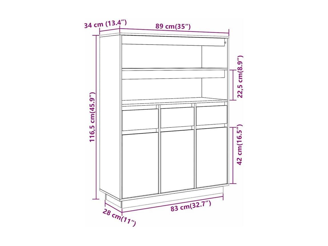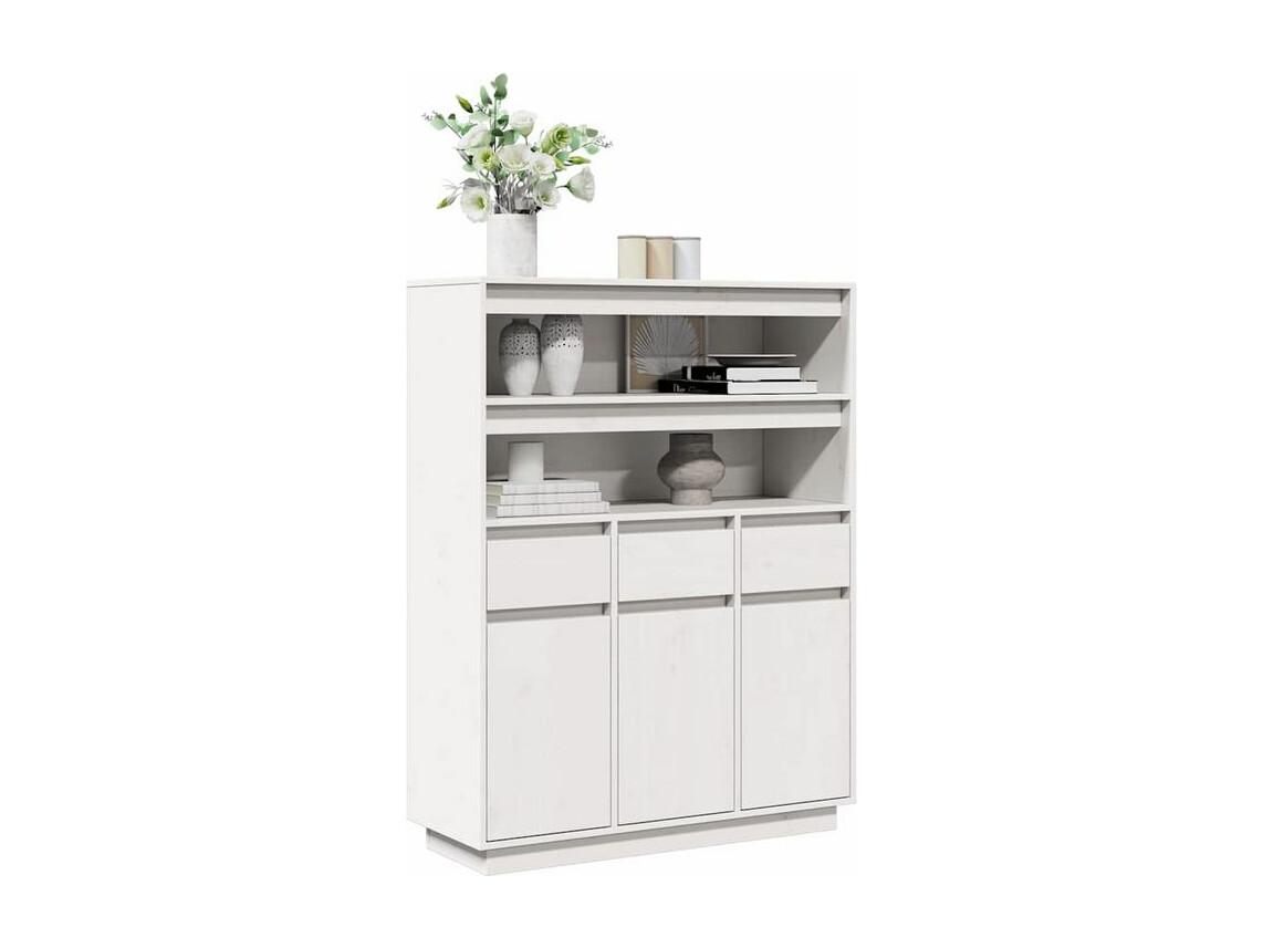 Buffet haut en bois de pin massif blanc - Polyvalent et sobre