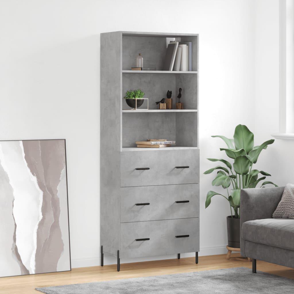 Buffet haut Gris béton 69,5x34x180 Bois d'ingénierie