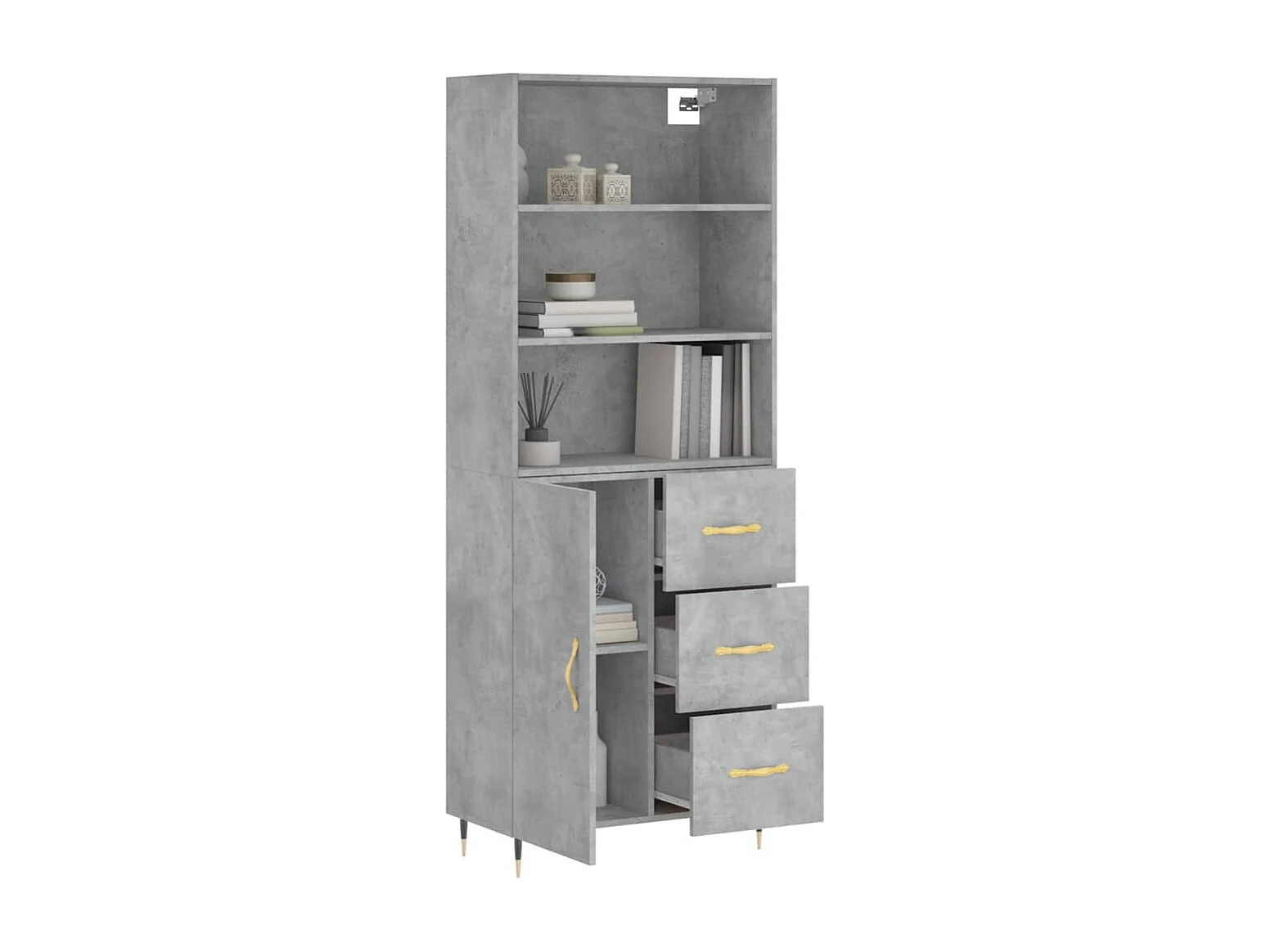 Buffet haut Gris béton 69,5x34x180 Bois d'ingénierie