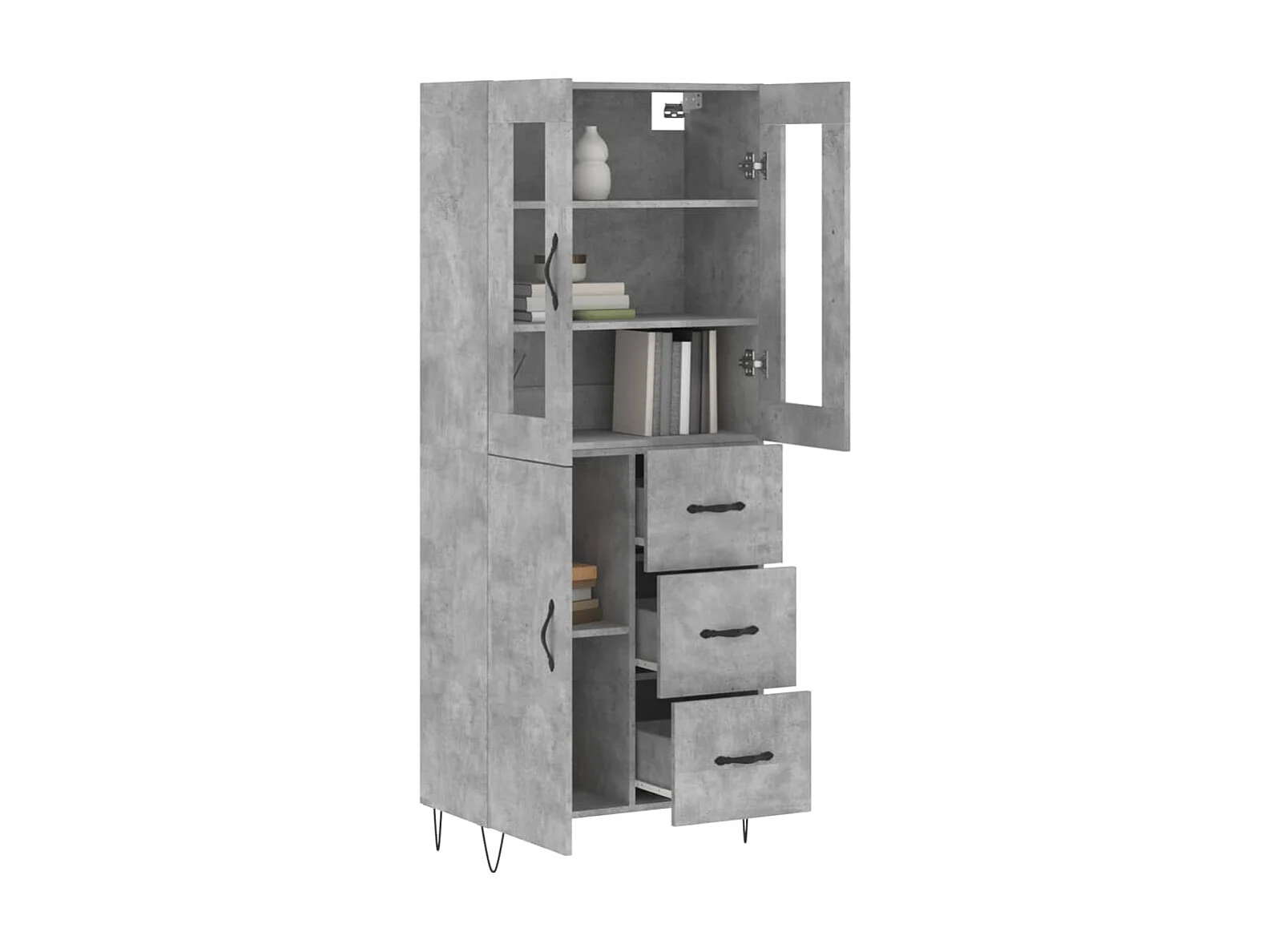 Buffet haut Gris béton 69,5x34x180 cm Bois d'ingénierie