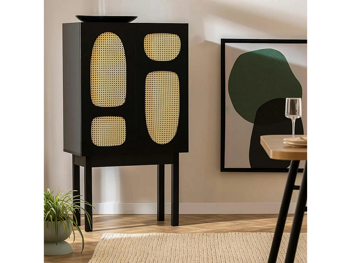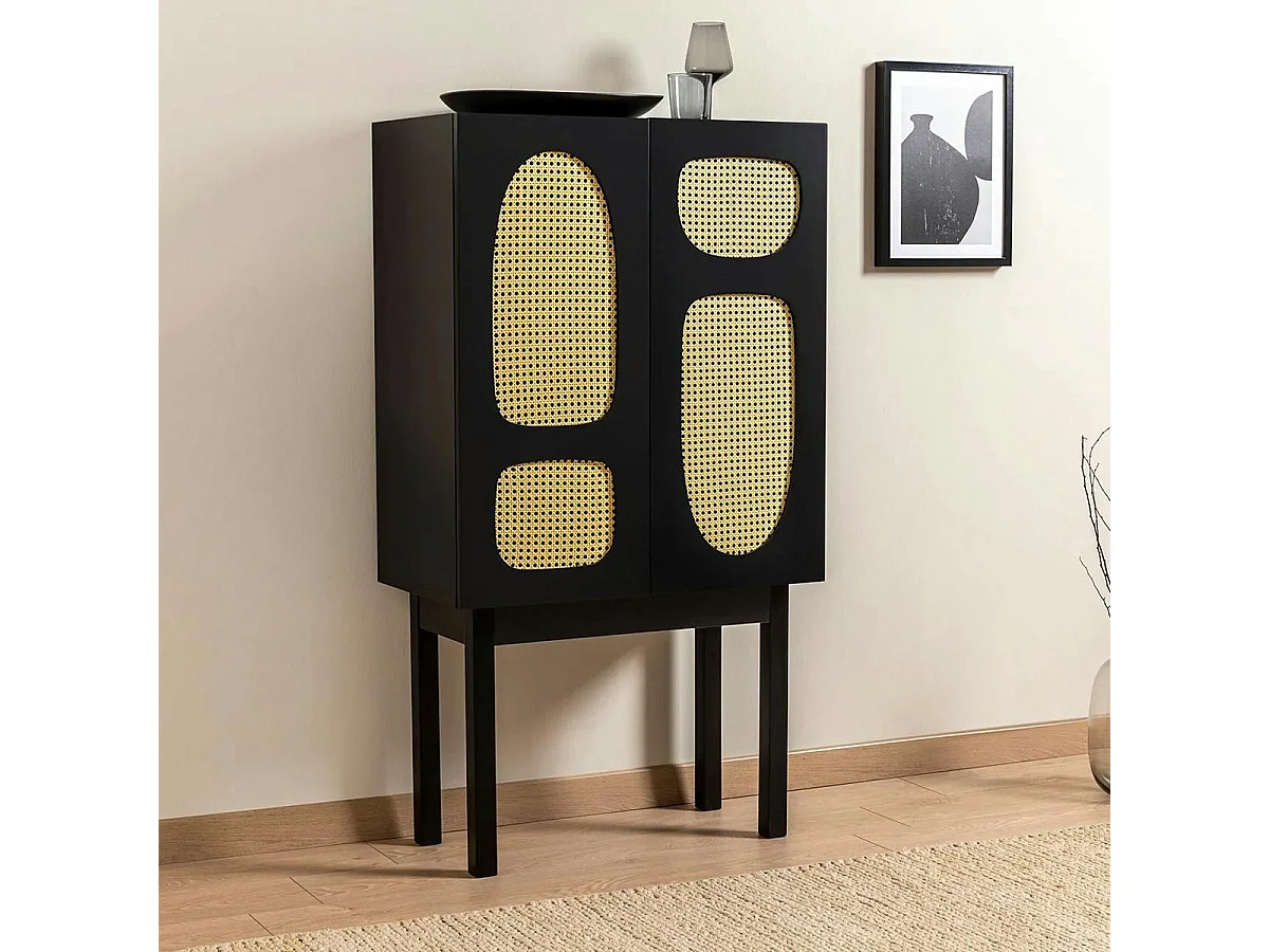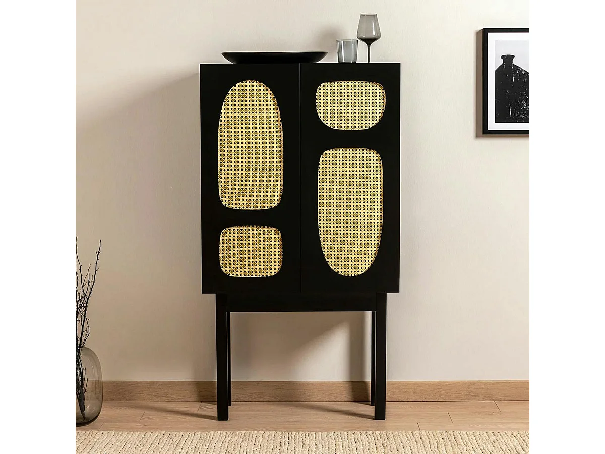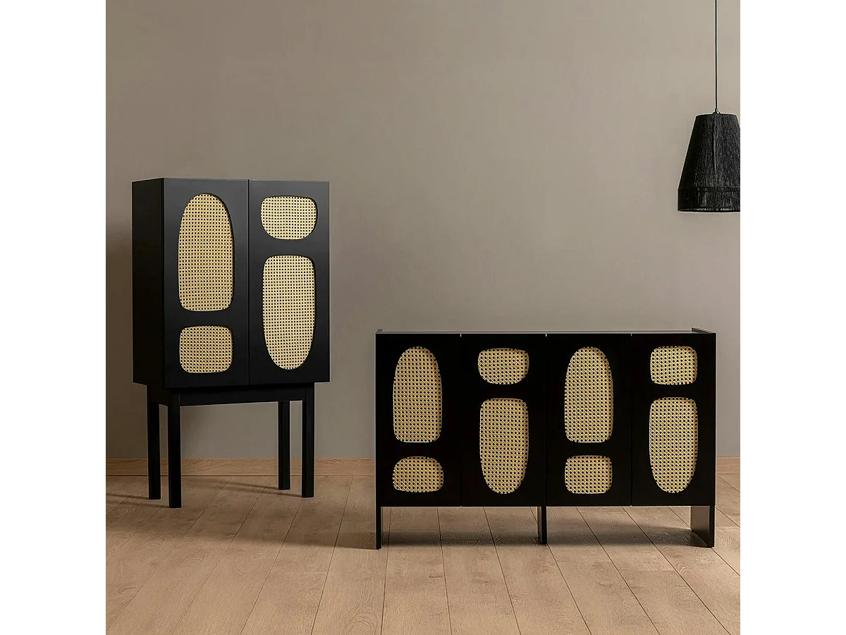 Buffet haut noir 2 portes à cannage organique VAREN