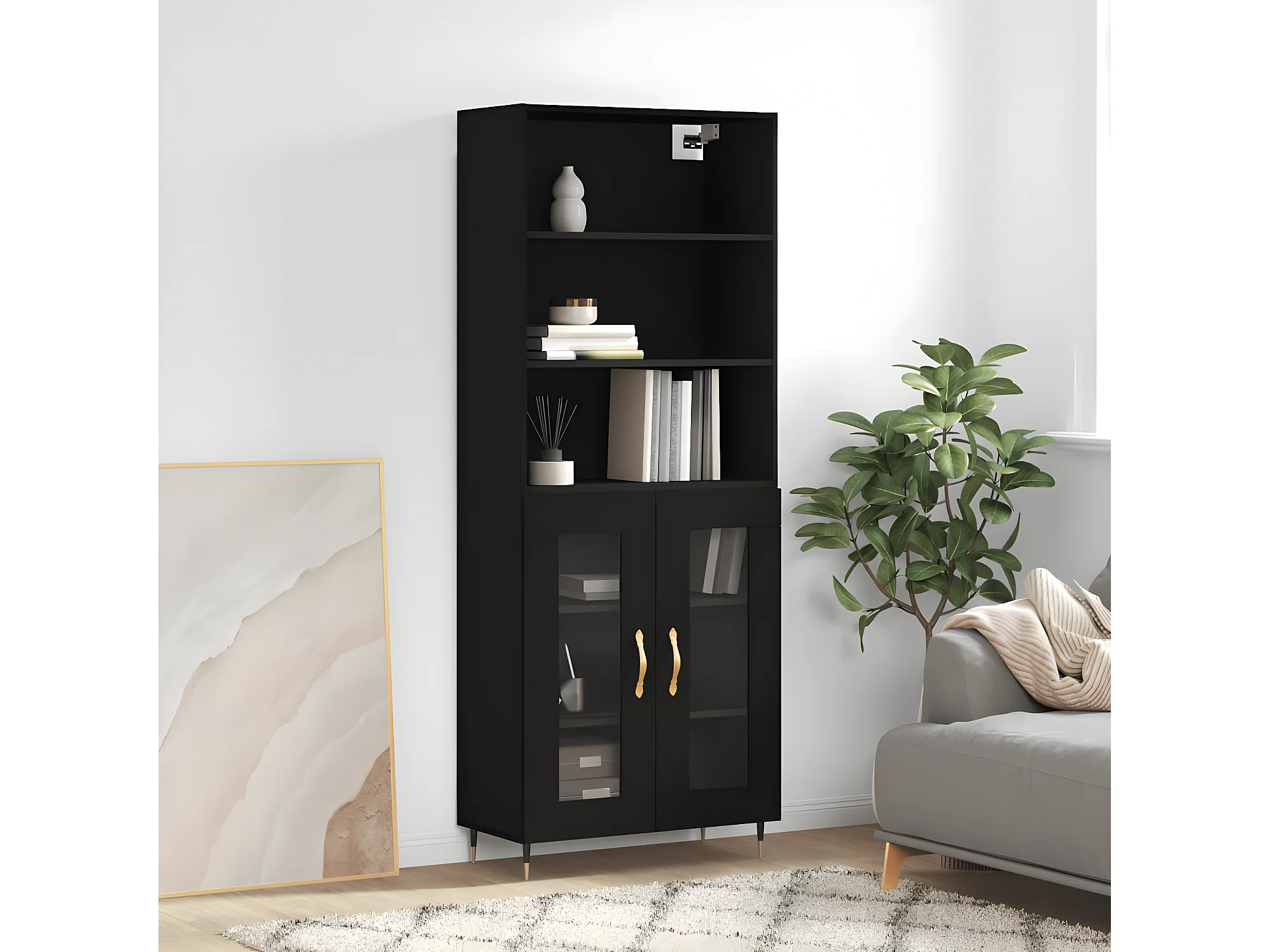 Buffet haut Noir 69,5x34x180 cm Bois d'ingénierie