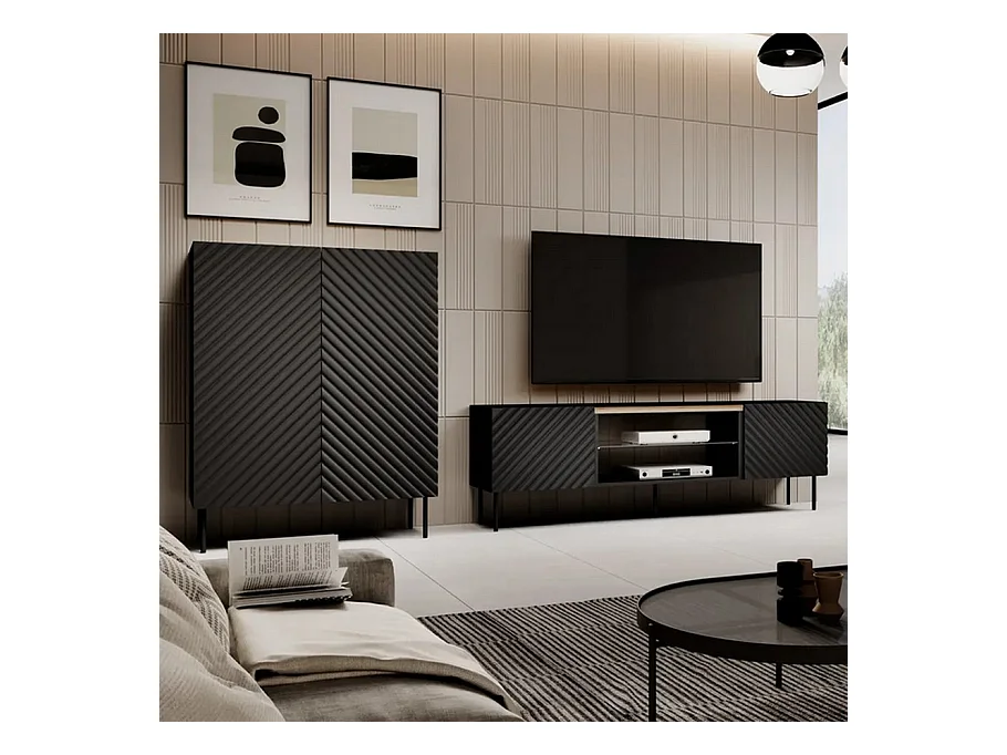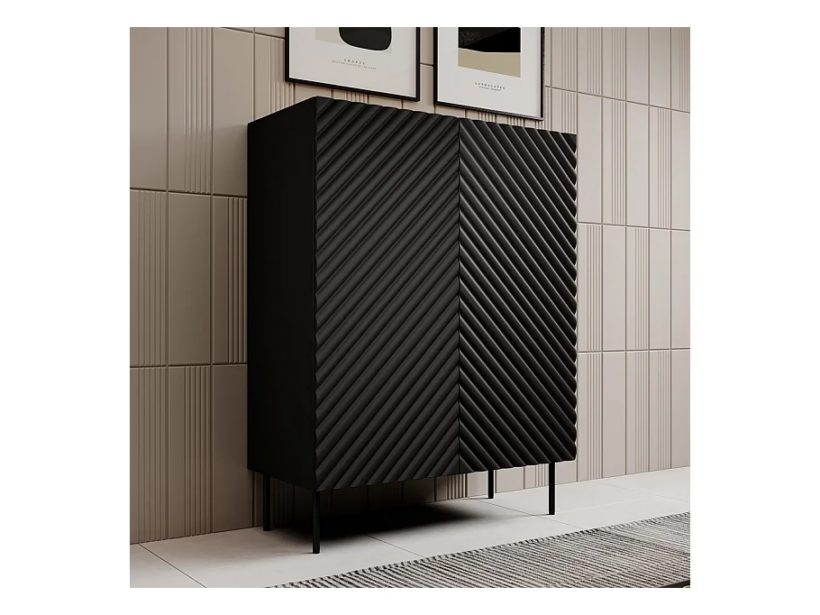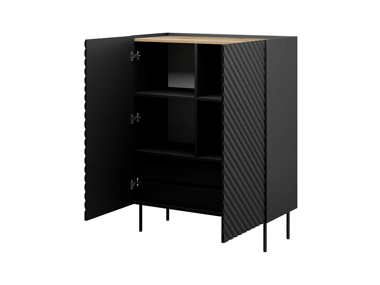 Buffet haut noir mat et bois 2 portes effet 3D Emile