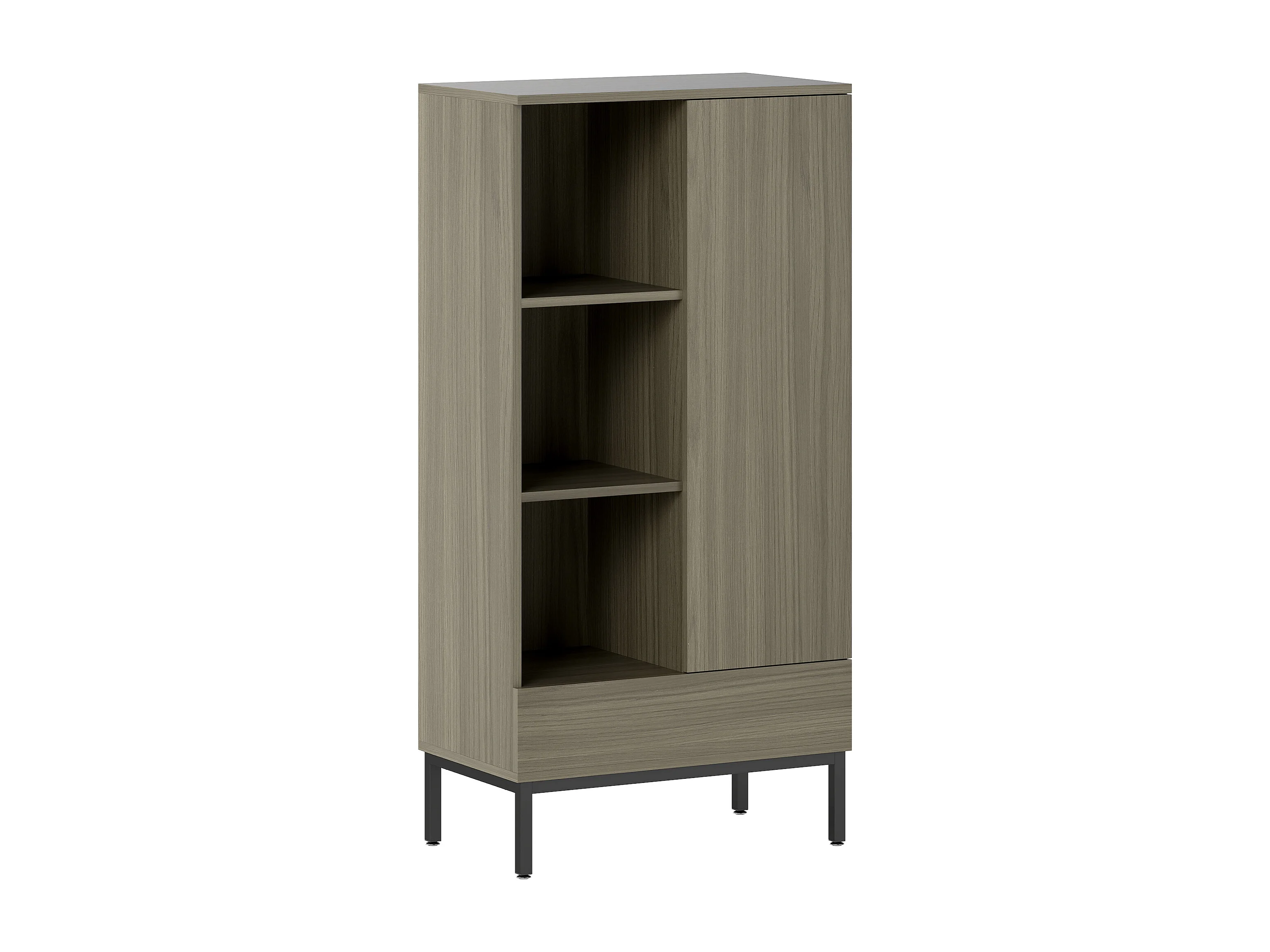 Buffet haut - porte, étagère, tiroir, 3 niches - 60 x 34 x 121 cm - piètement acier noir effet bois gris