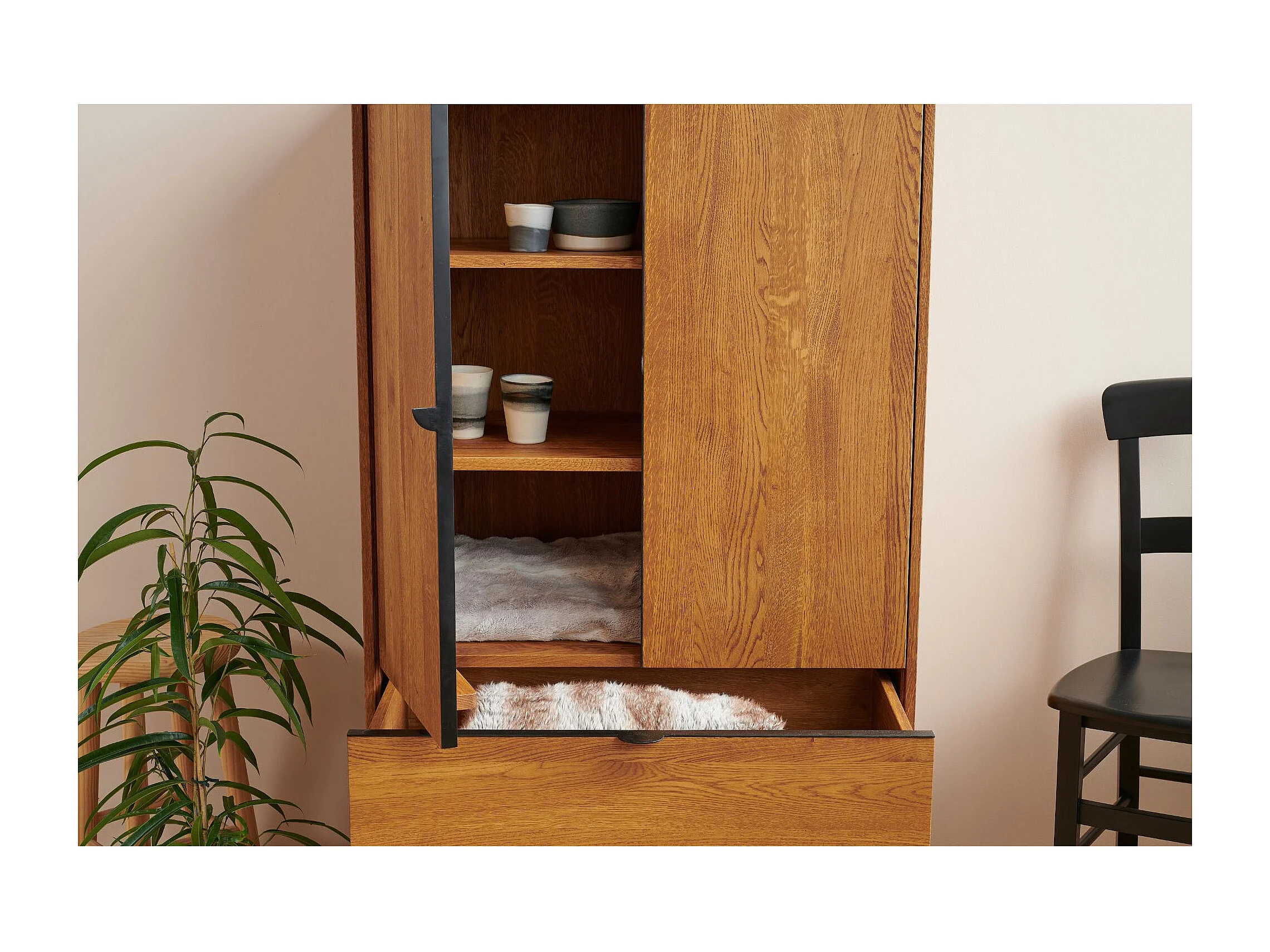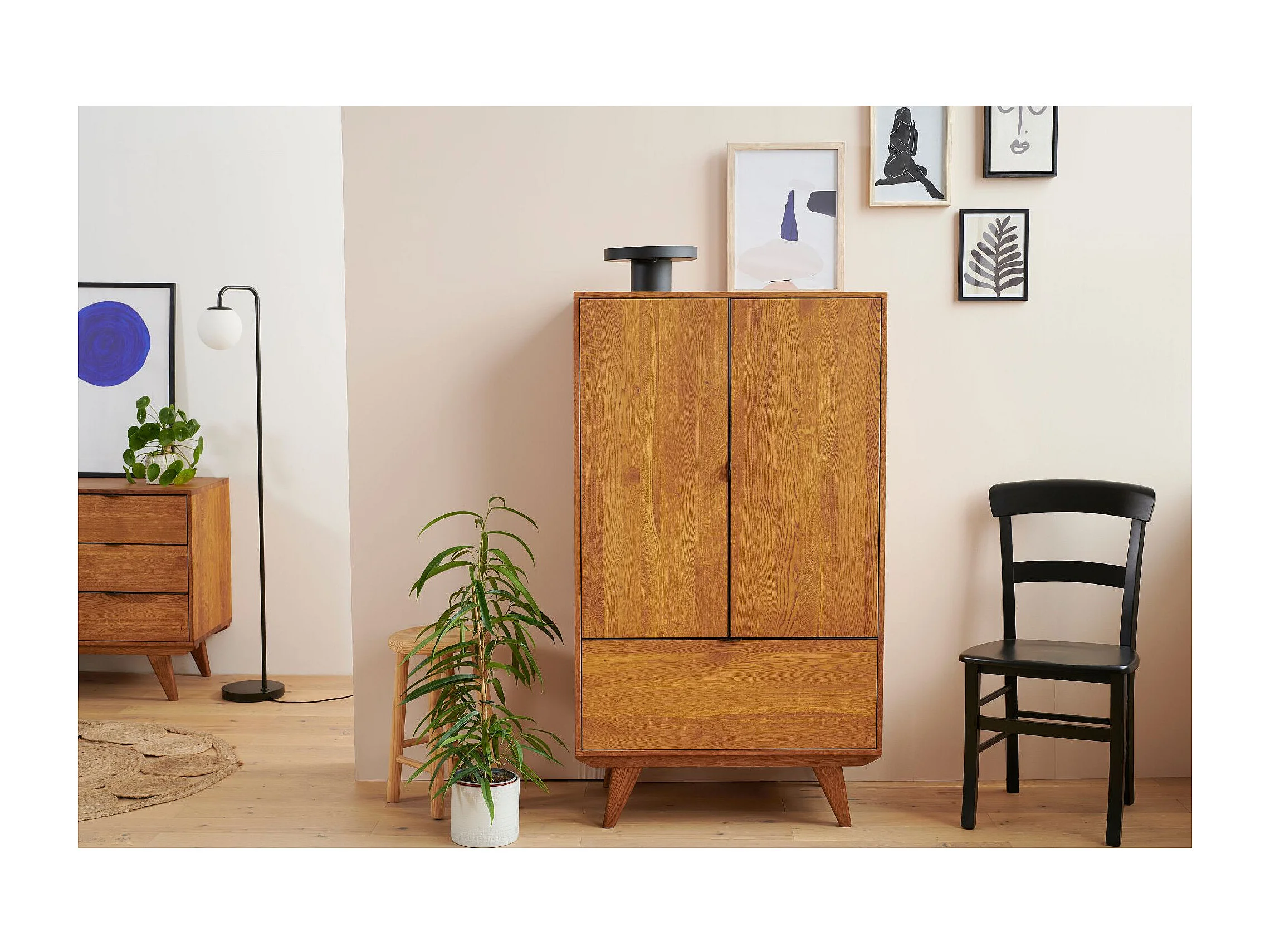 Buffet haut rétro en bois 2 portes 1 tiroir L80 H140 noir - MALLET