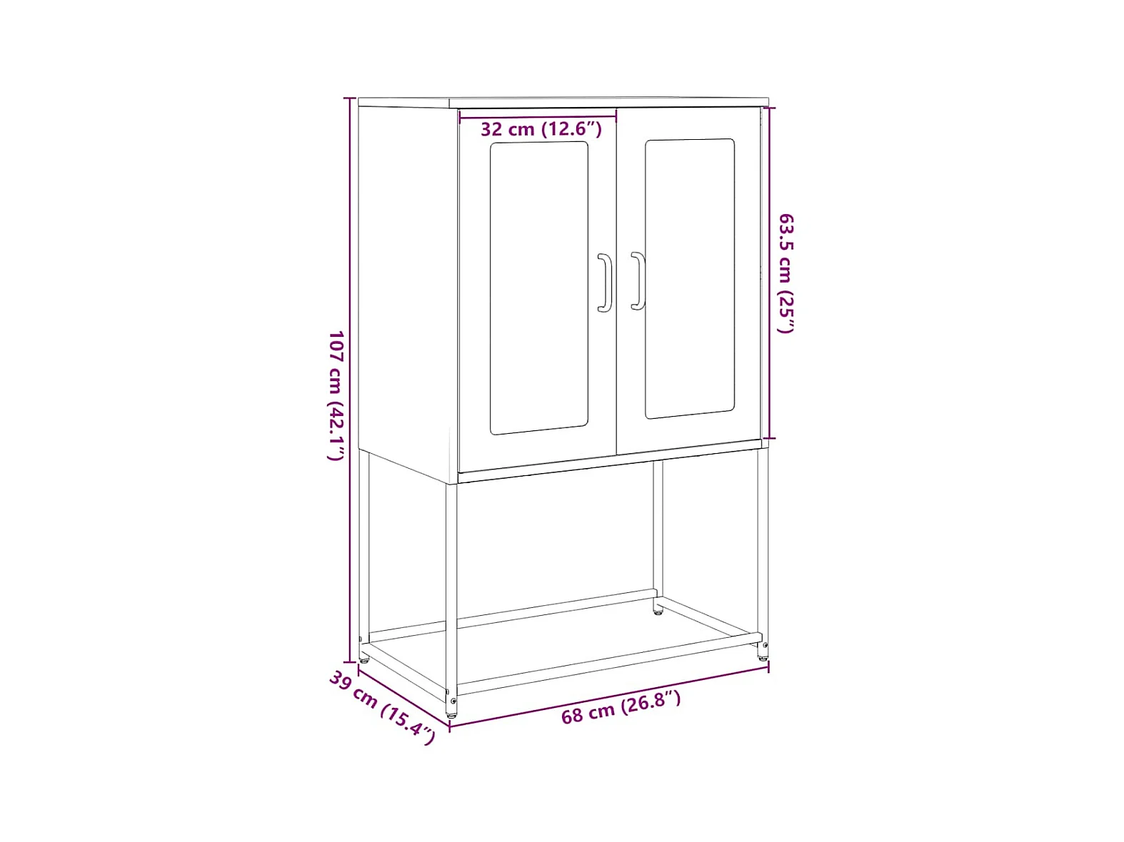 Buffet haut rose 68x39x107 cm acier