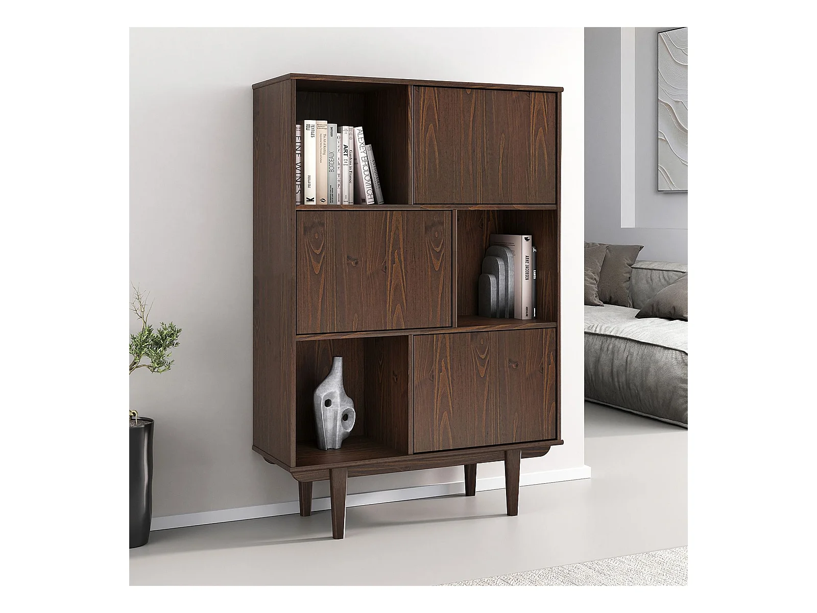 Buffet haut SIMONA 95x139 cm en bois massif coloris noyer avec 3 Portes et 3 Étagères, Vaisselier en hauteur