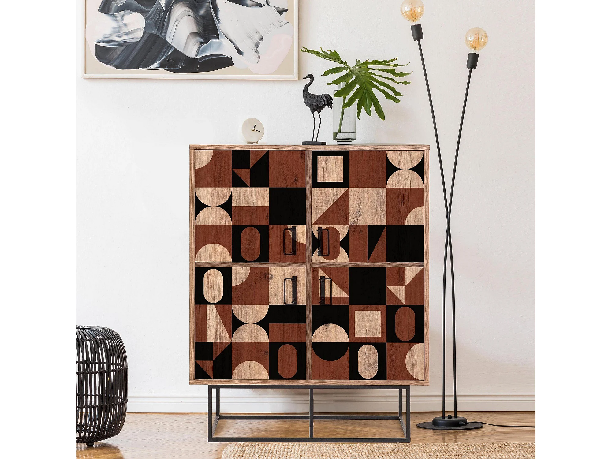 Buffet haut style industriel 4 portes Feneta Bois clair Motif Géométrique Marron foncé et Noir
