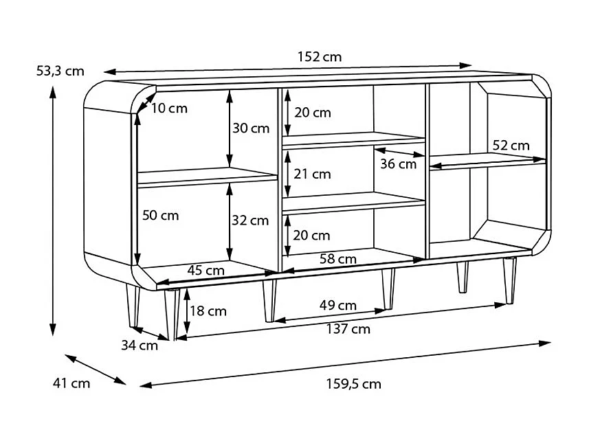 Buffet L. 160 cm décor chêne cannage rotin et pieds en bois - VIVIAN