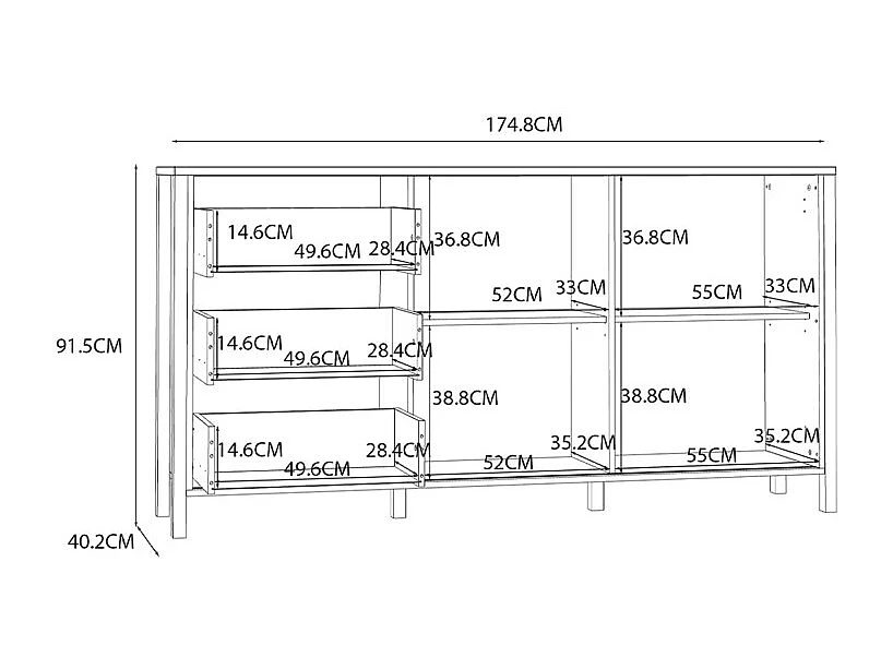 Buffet L. 175 cm décor chêne porte coulissante ajourée noire - SELENA