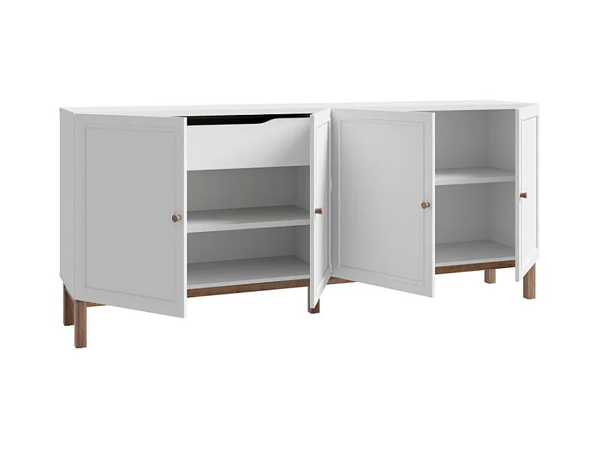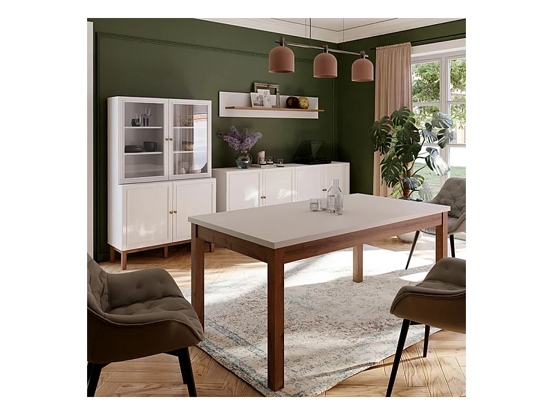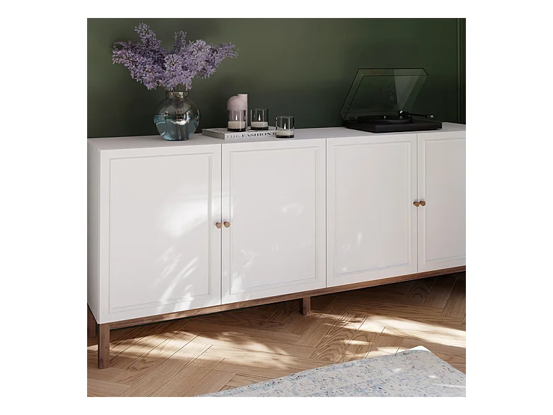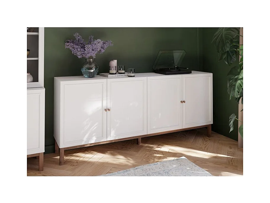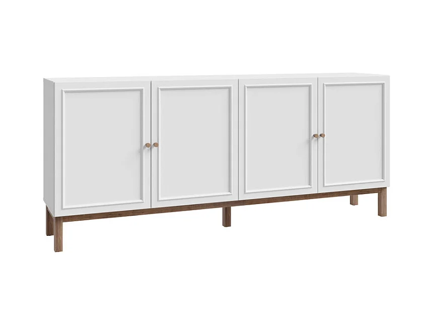 Buffet L. 199 cm décor gris et chêne avec poignées en bois - UDINE