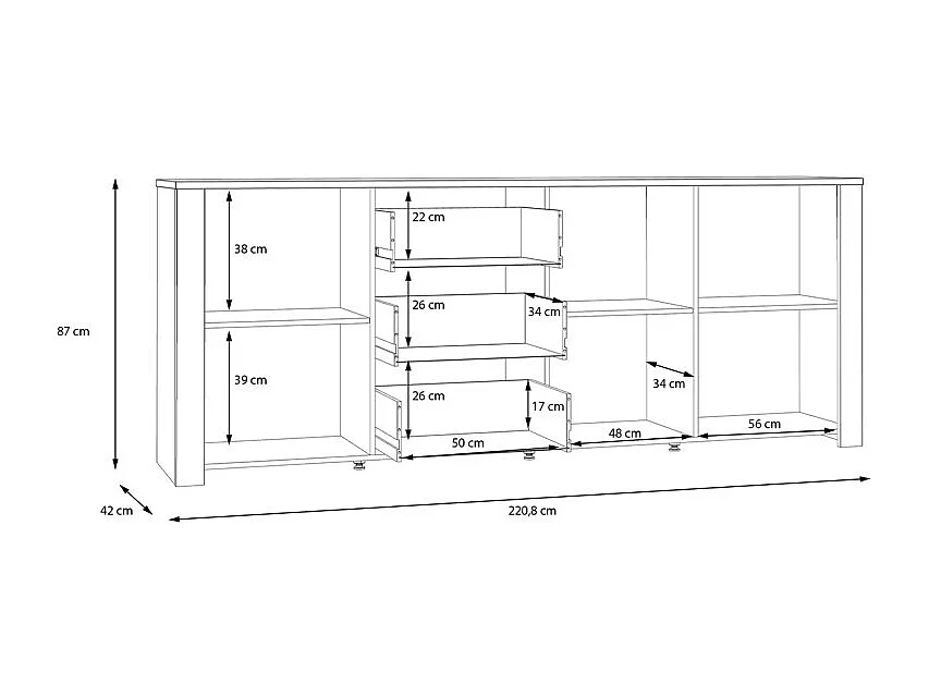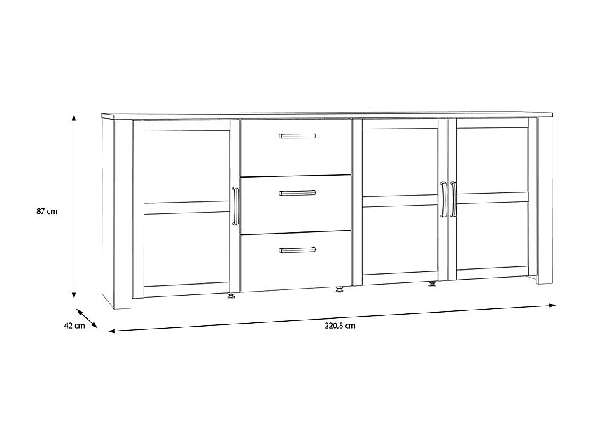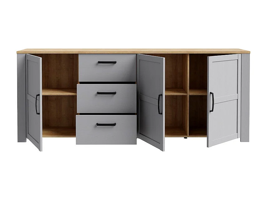 Buffet L221 cm décor chêne et gris clair avec poignées noir - ANTIBES