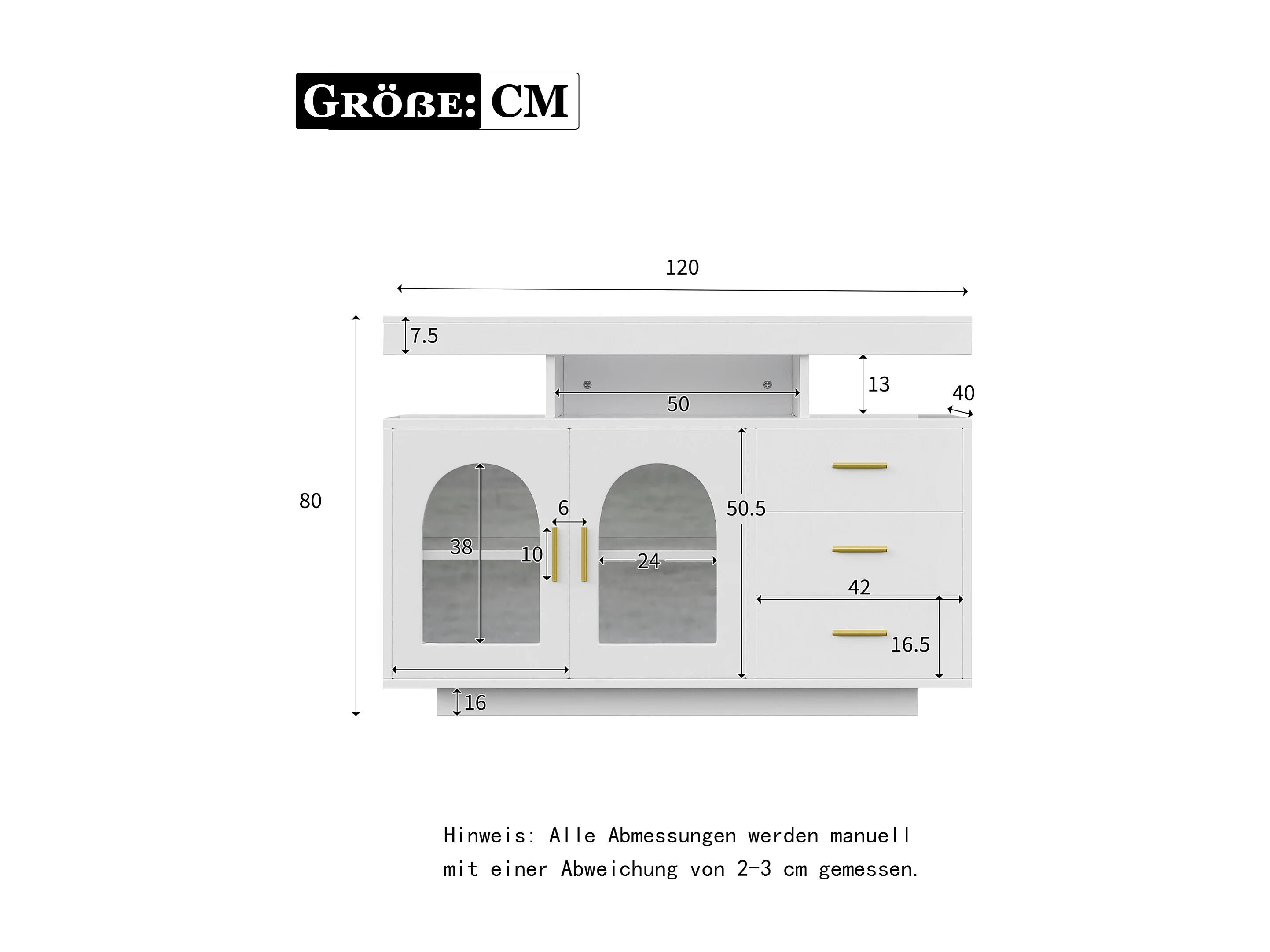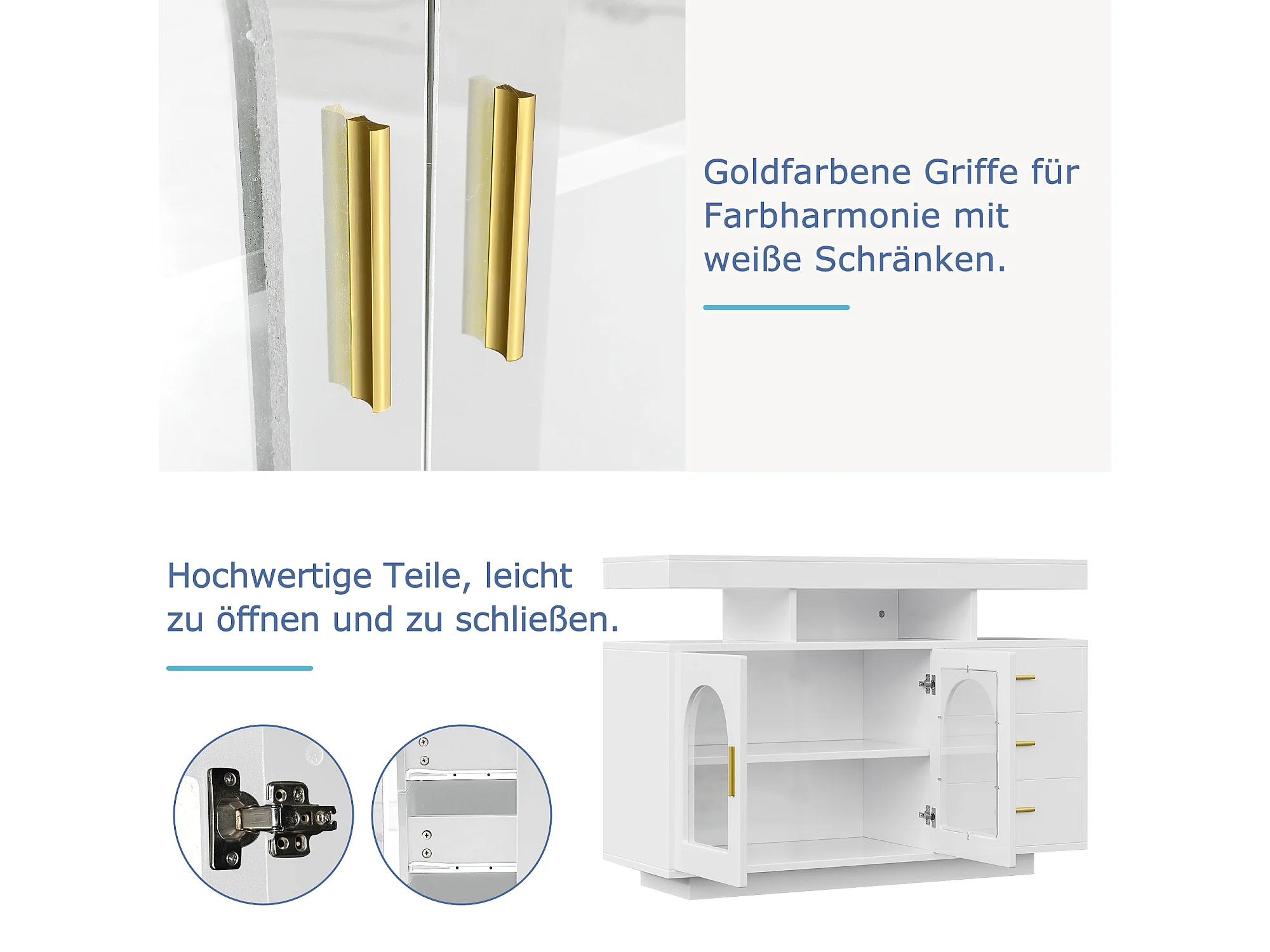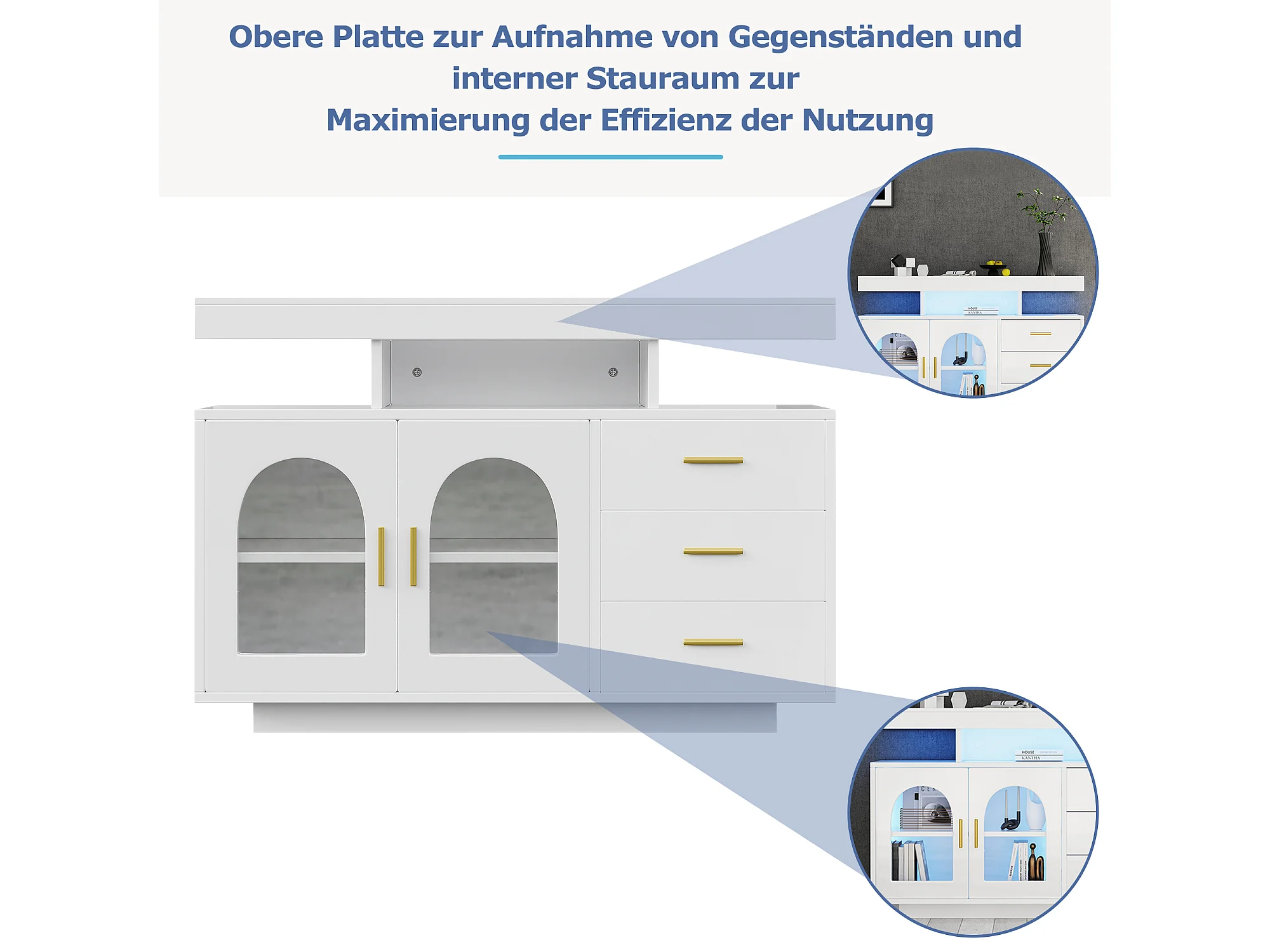 Buffet laqué brillant blanche avec LED, 3 tiroirs et 2 portes 120x40x80cm