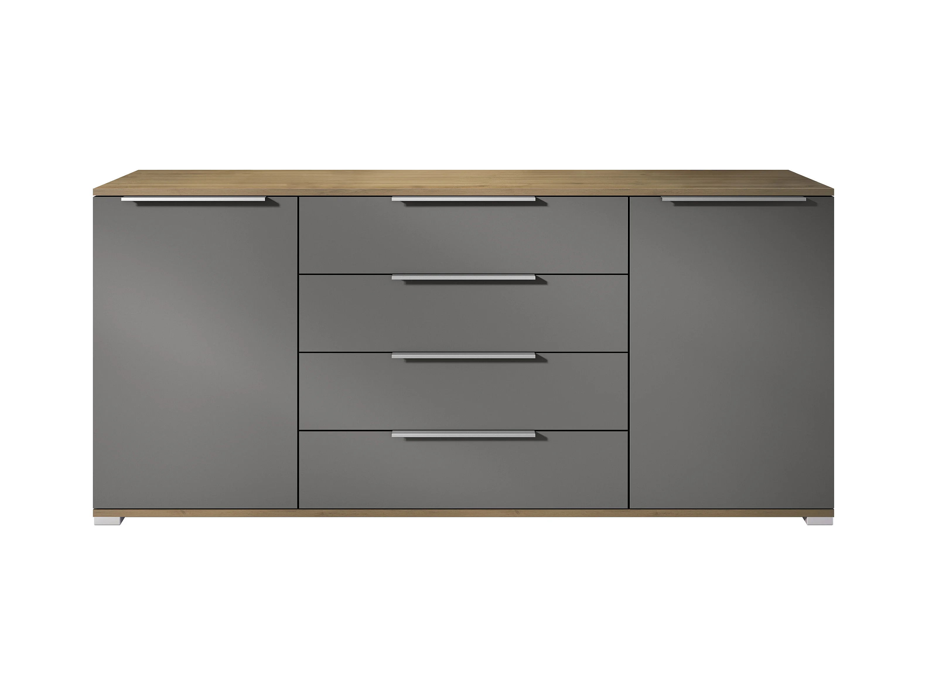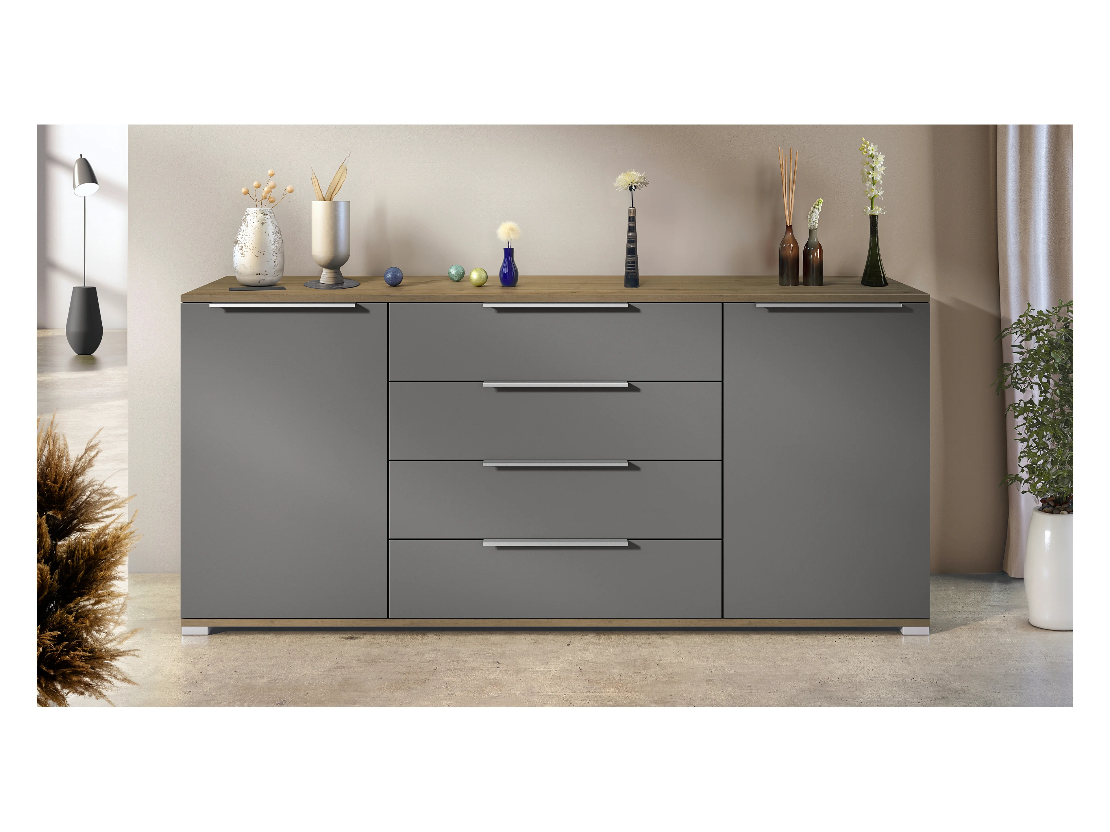 Buffet Linio V2 – Commode moderne avec 2 portes et 4 tiroirs, Chêne Evoke/anthracite mat, 166,5 x 75,5 x 35 cm (L x H x P) – Meuble de rangement bahut