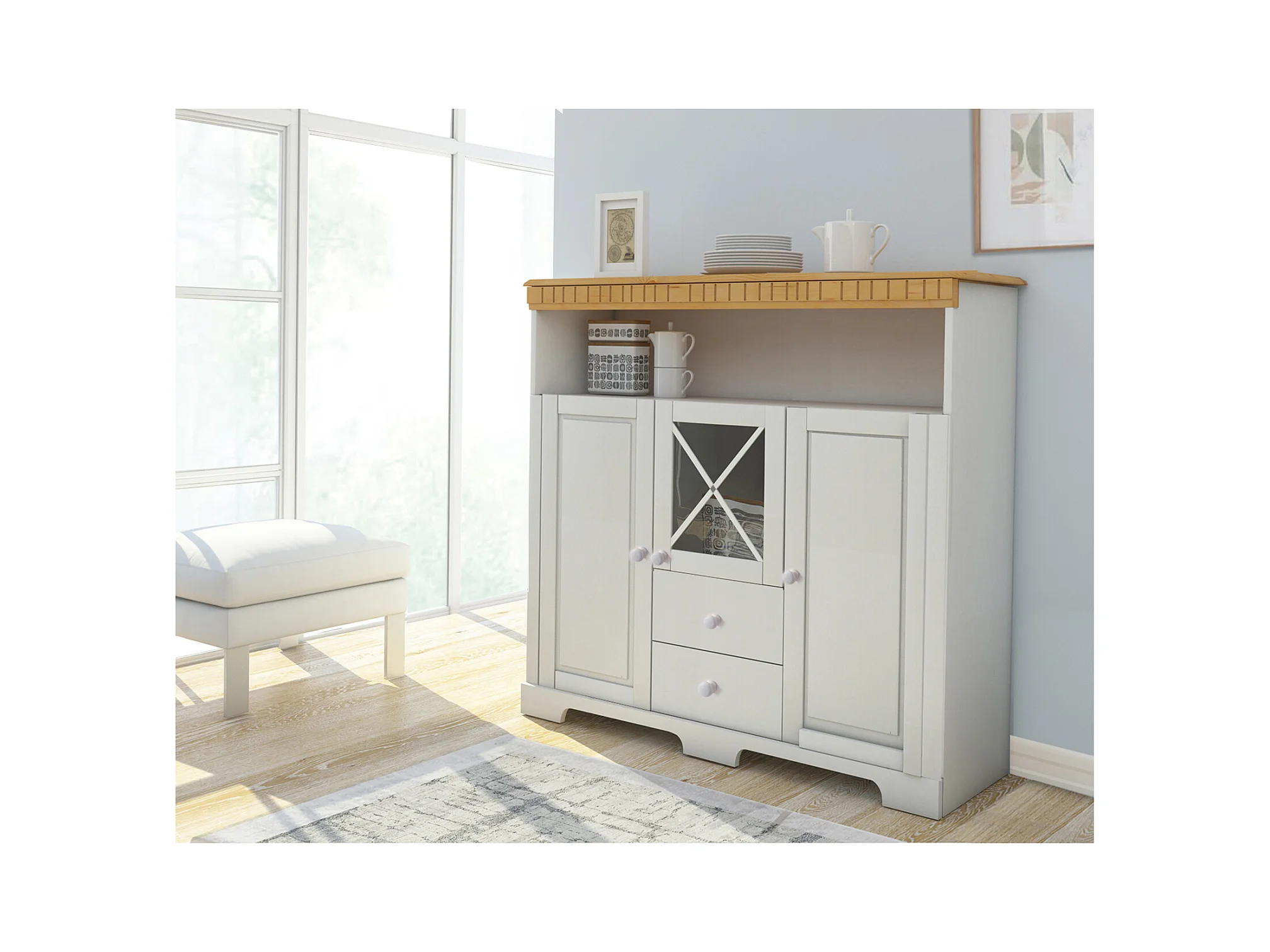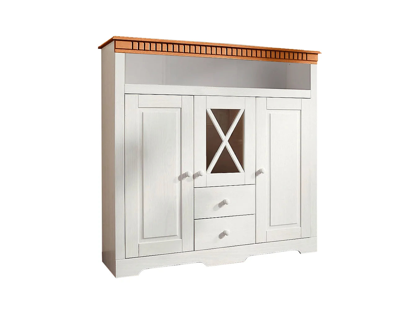Lisa|Buffet avec 2 portes 3 tiroirs en pin teinté blanc