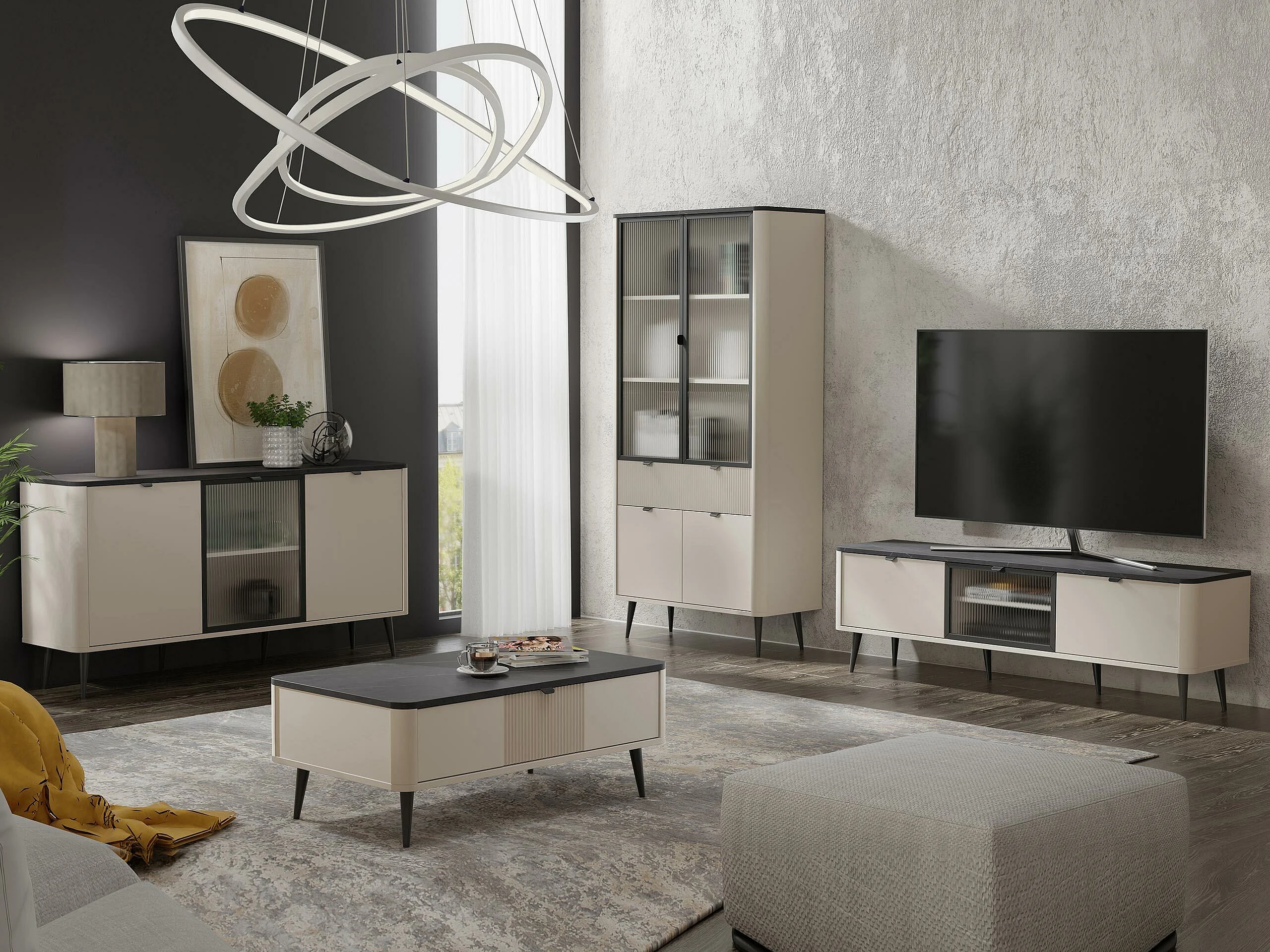 Buffet Lufela 105, Cachemire|Marbre gris, 82x160x40cm, Stratifié|Verre trempé|MDF