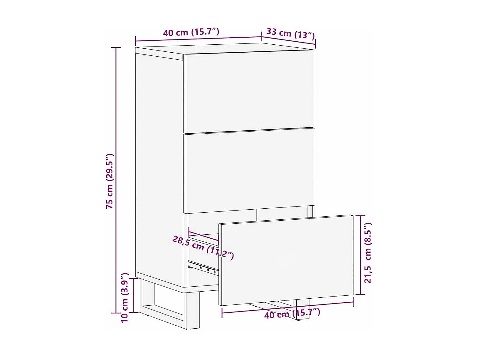 Buffet Marron 40 x 33 x 75 cm bois de manguier massif
