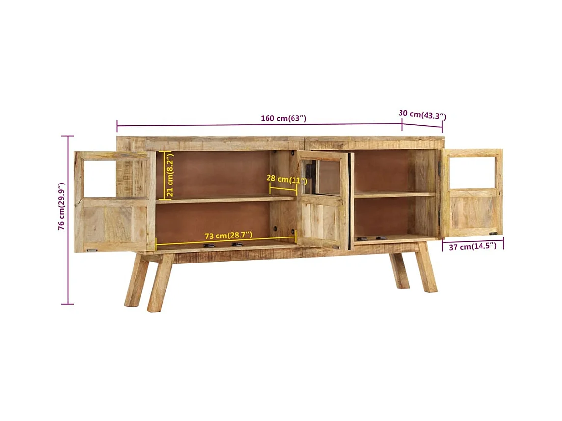 Buffet marron et noir 160x30x76 cm bois massif de manguier