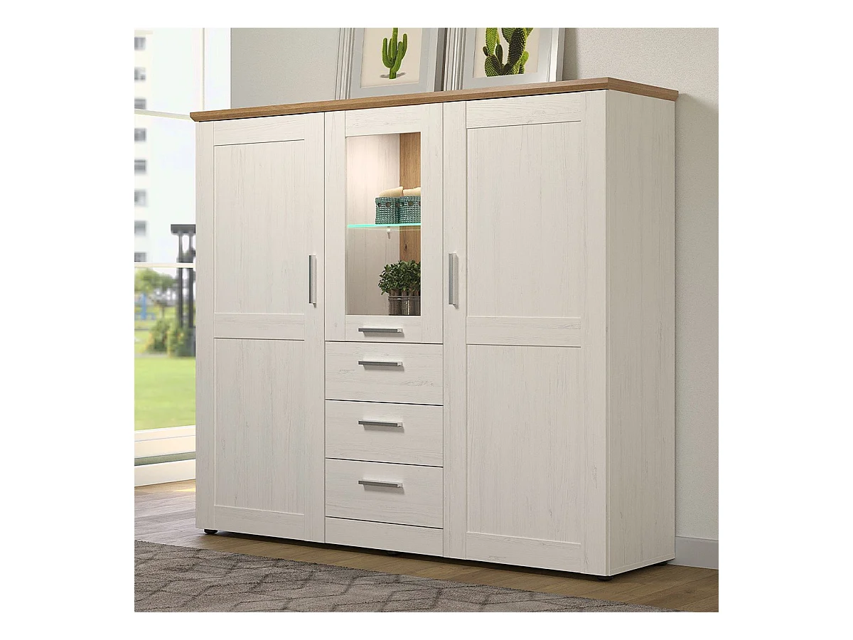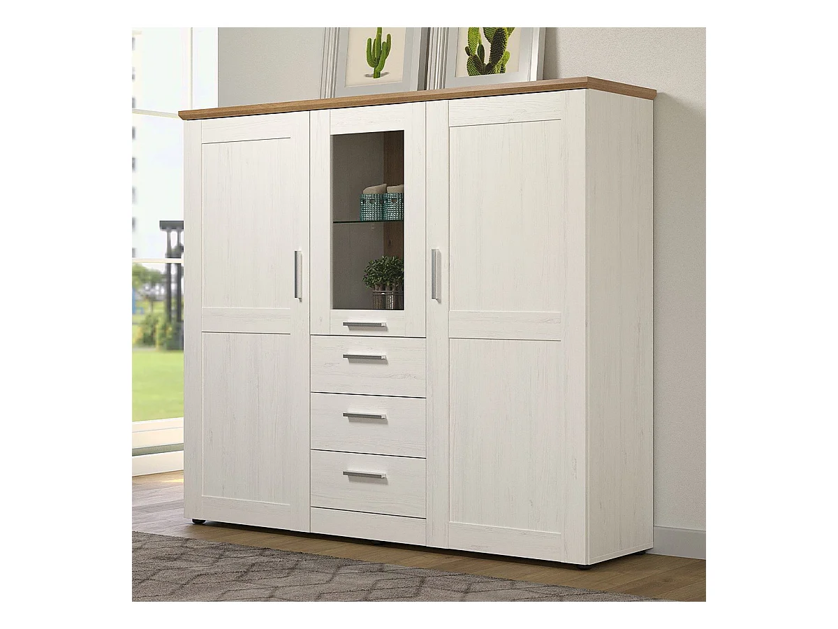 Vaisselier 3 portes dont une avec verre trempé, 3 tiroirs L159 cm - Shade